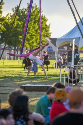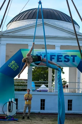 An aerial silk performer at Craft Lake Citys’ DIYfest. Photo: Em Behringer