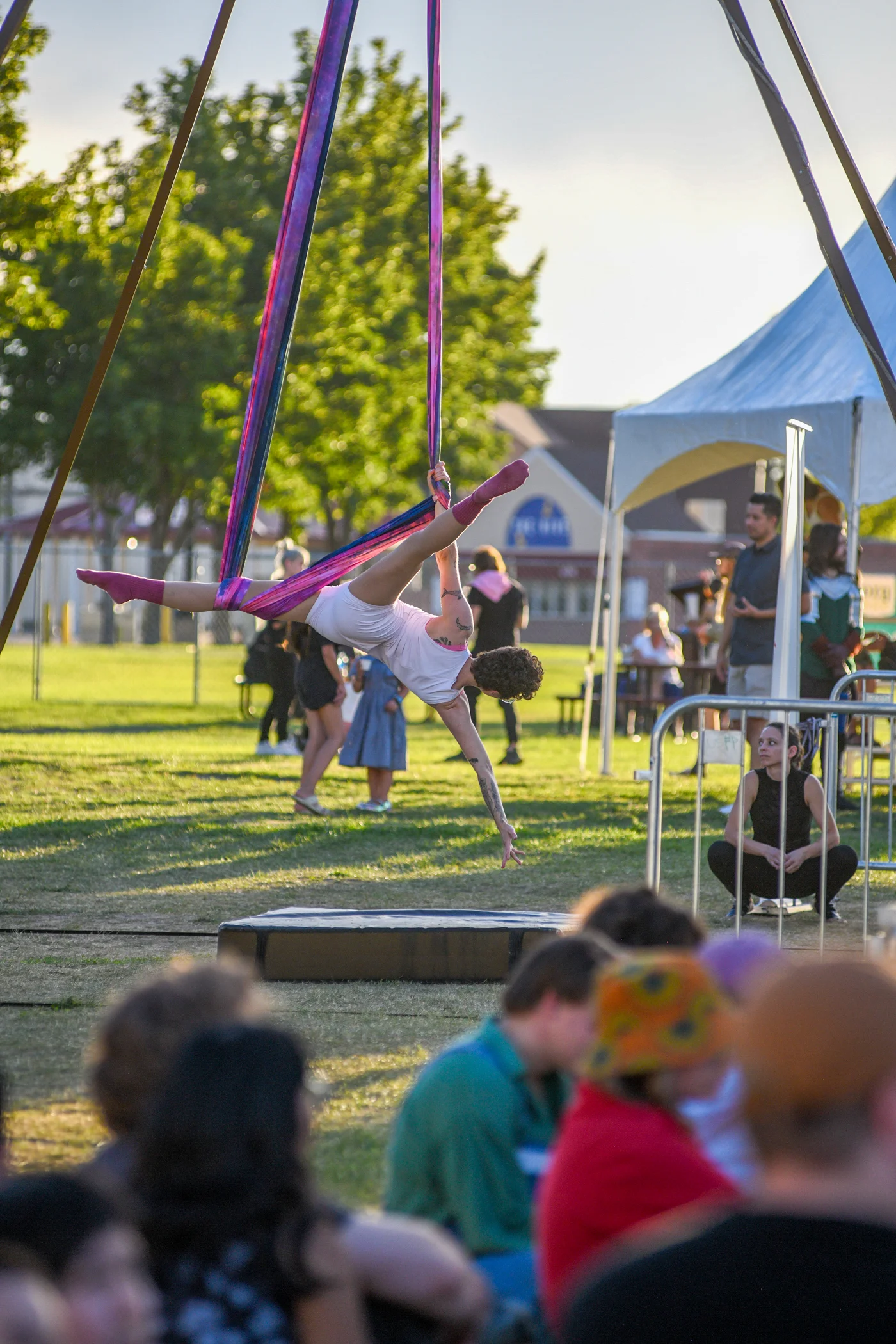 An aeriel silk performer creating art with every twist and turn Photo: Em Behringer