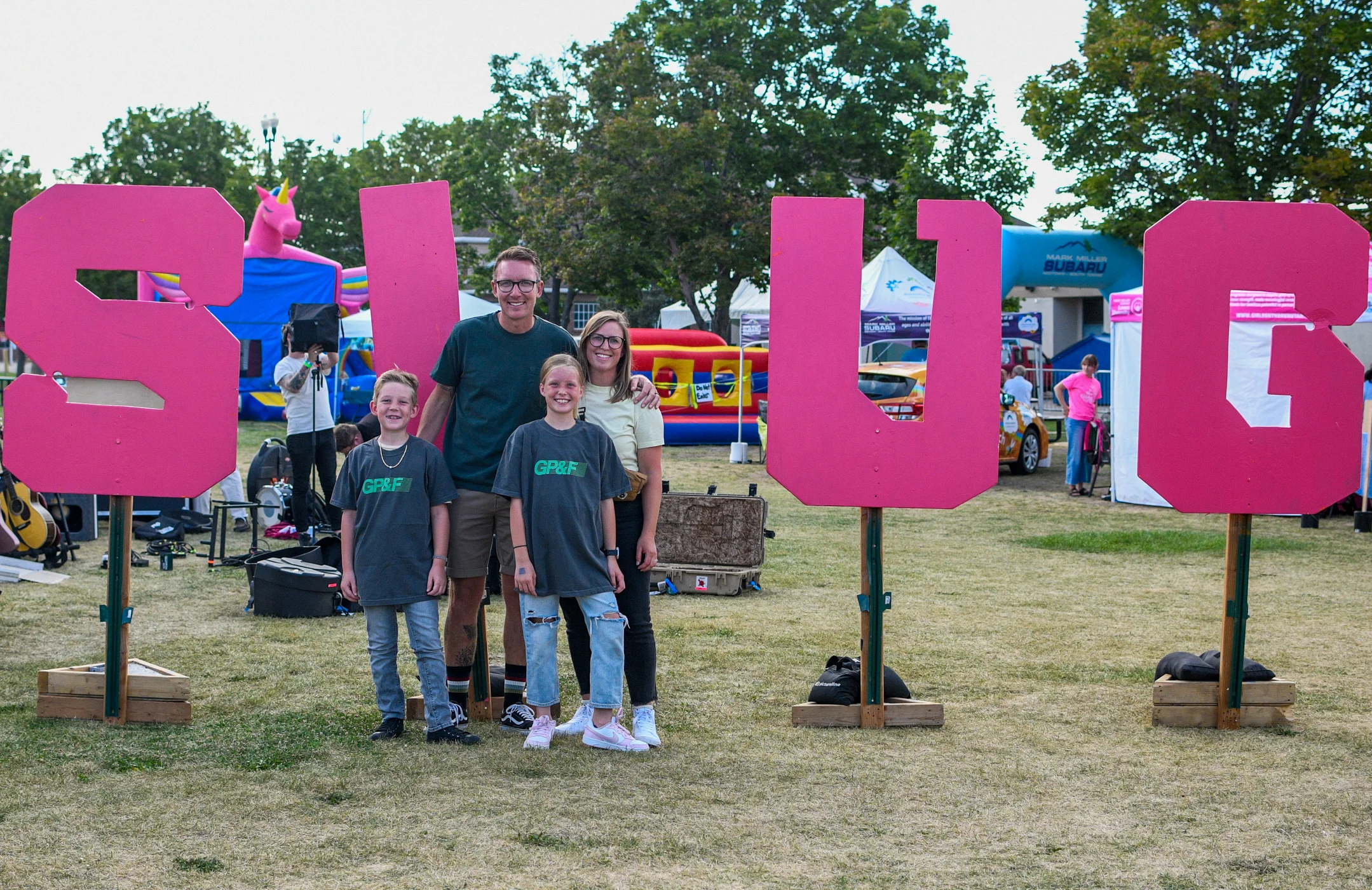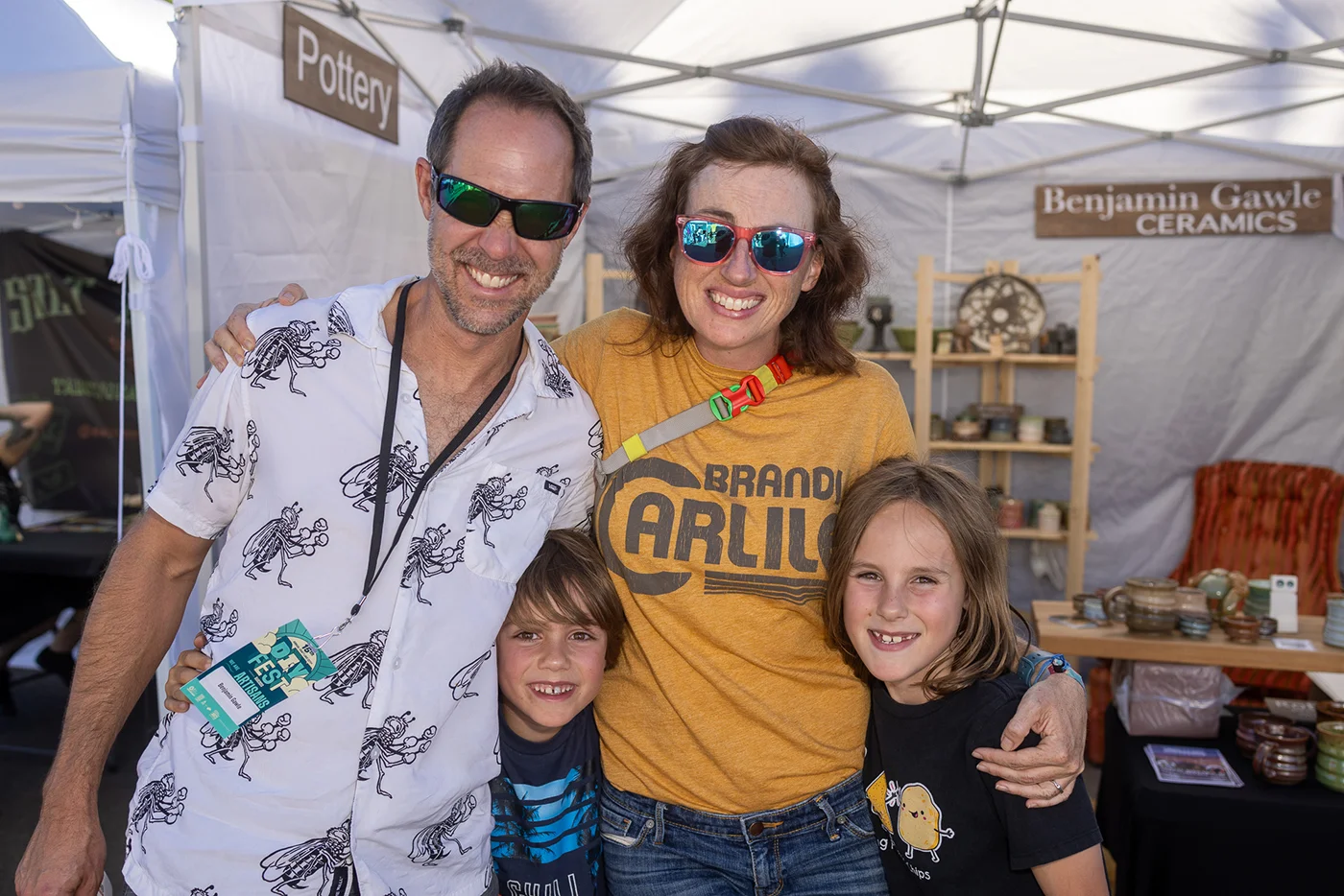 Family with their new Gable Price and Friends merch. Photo: Em Behringer