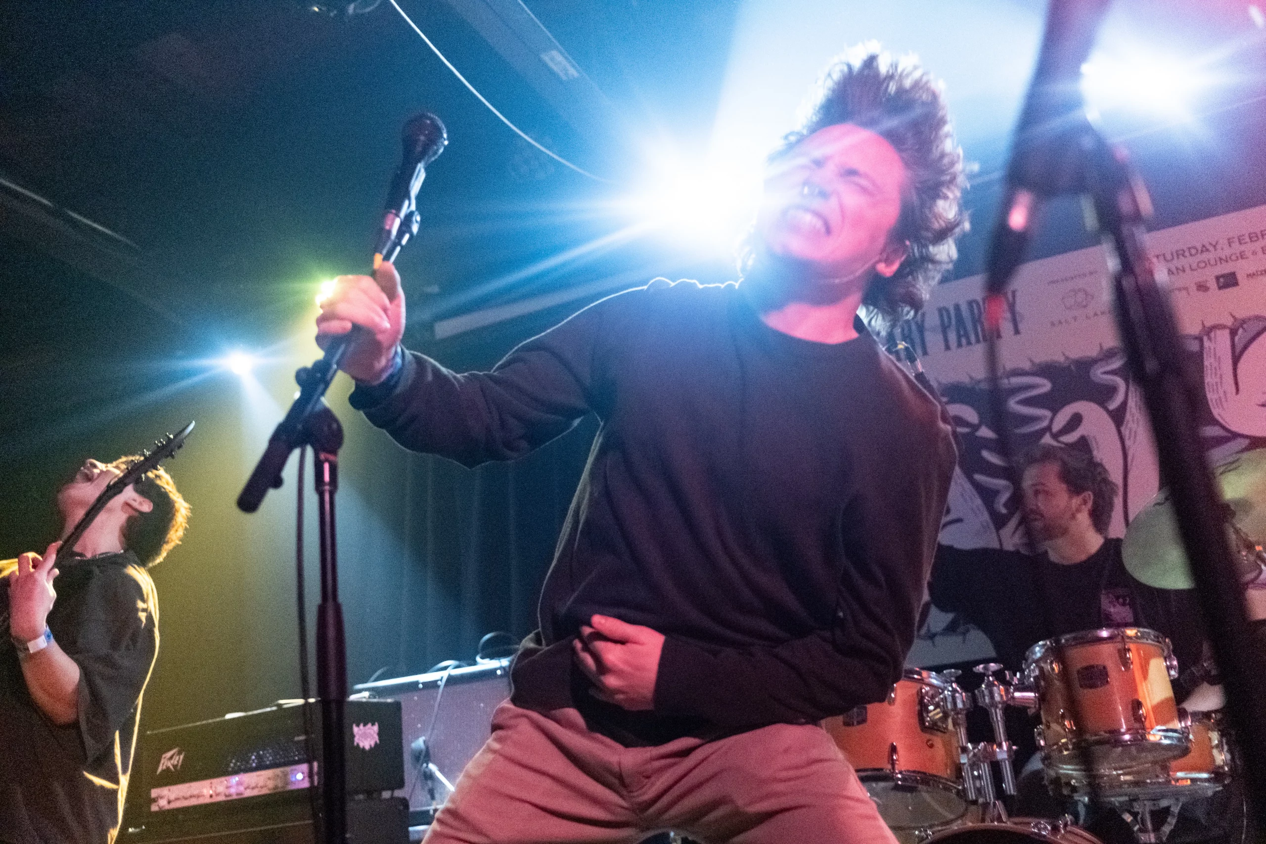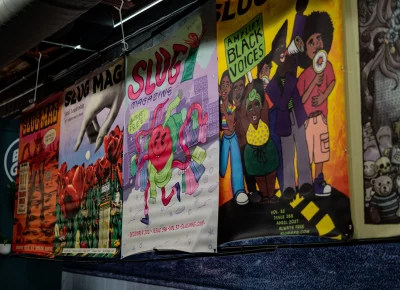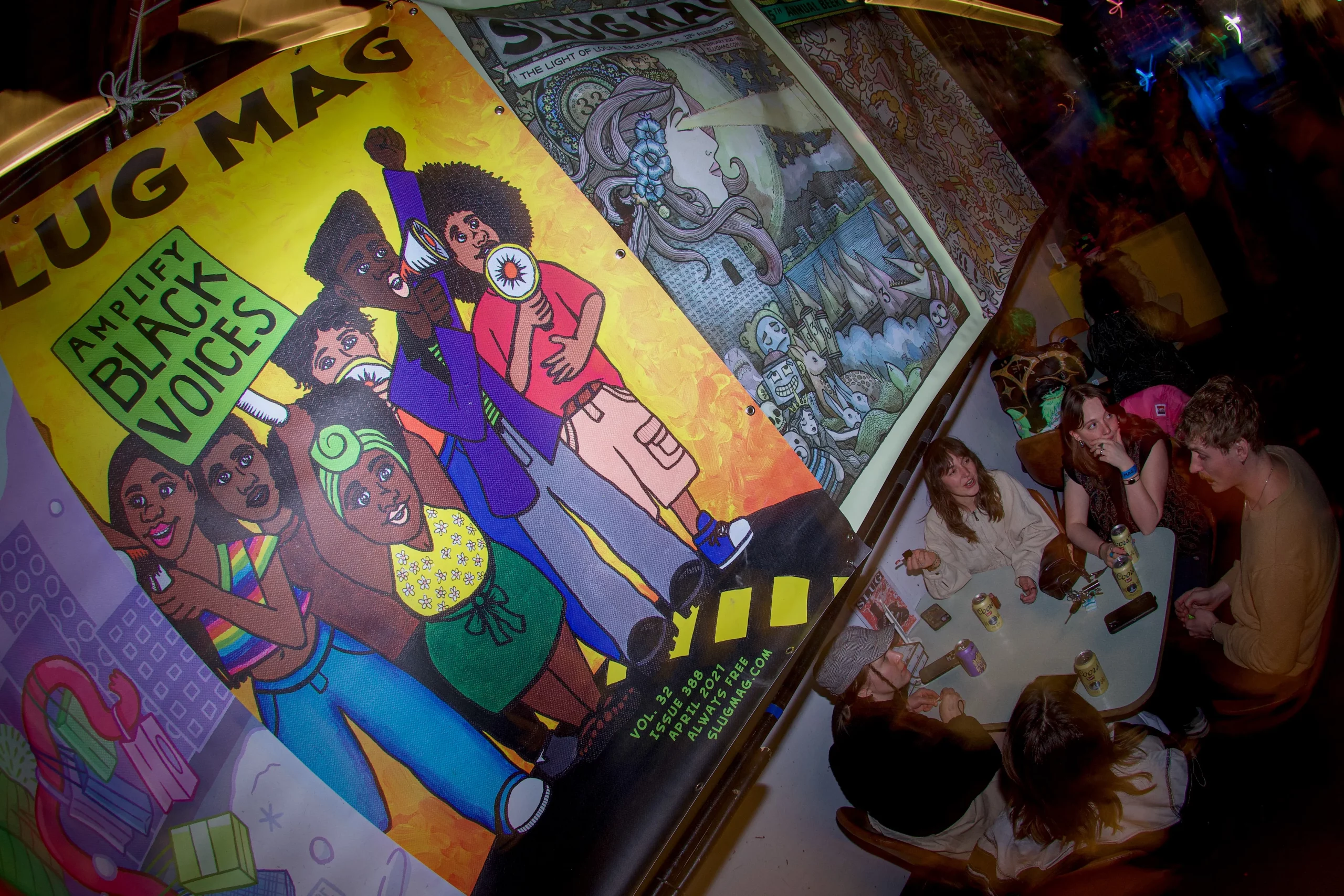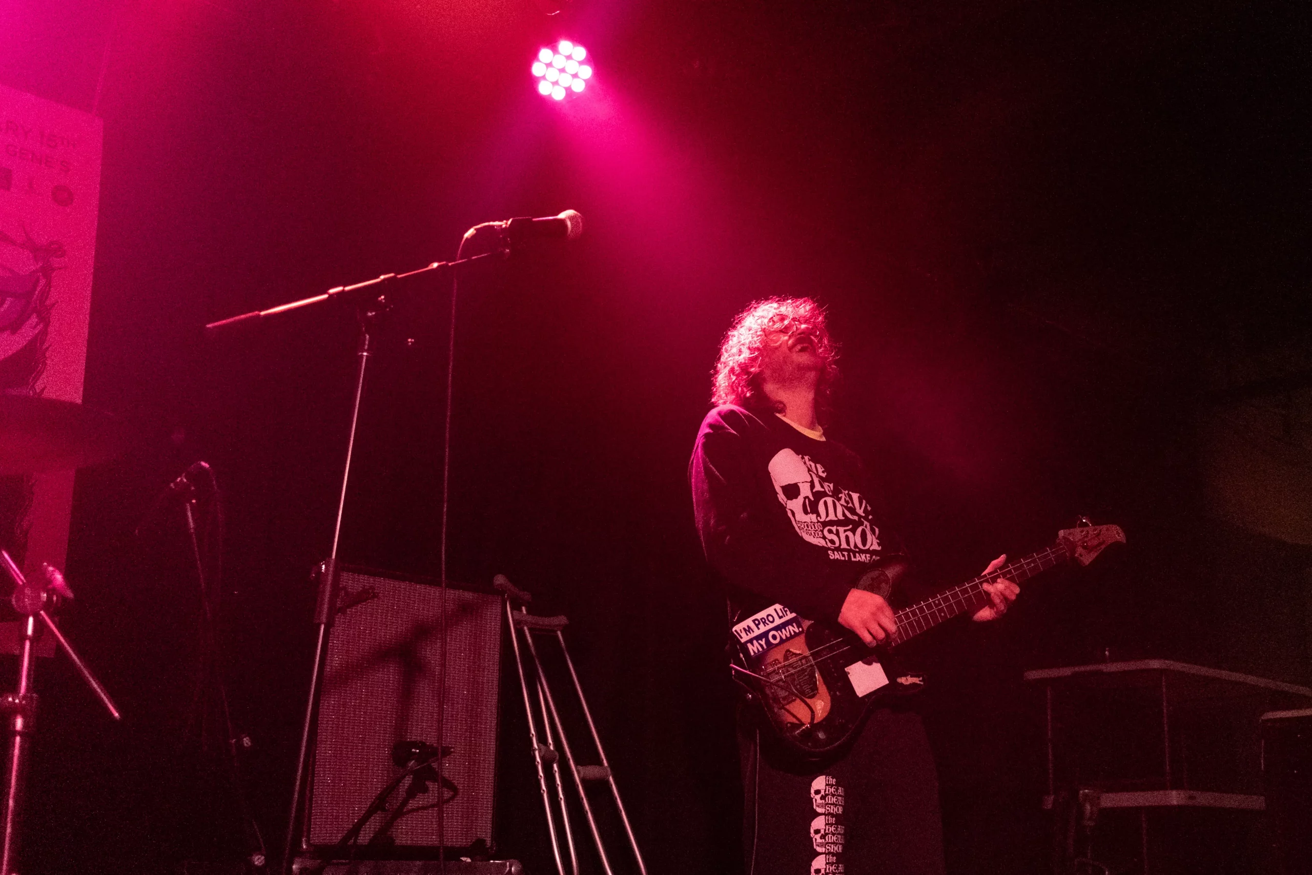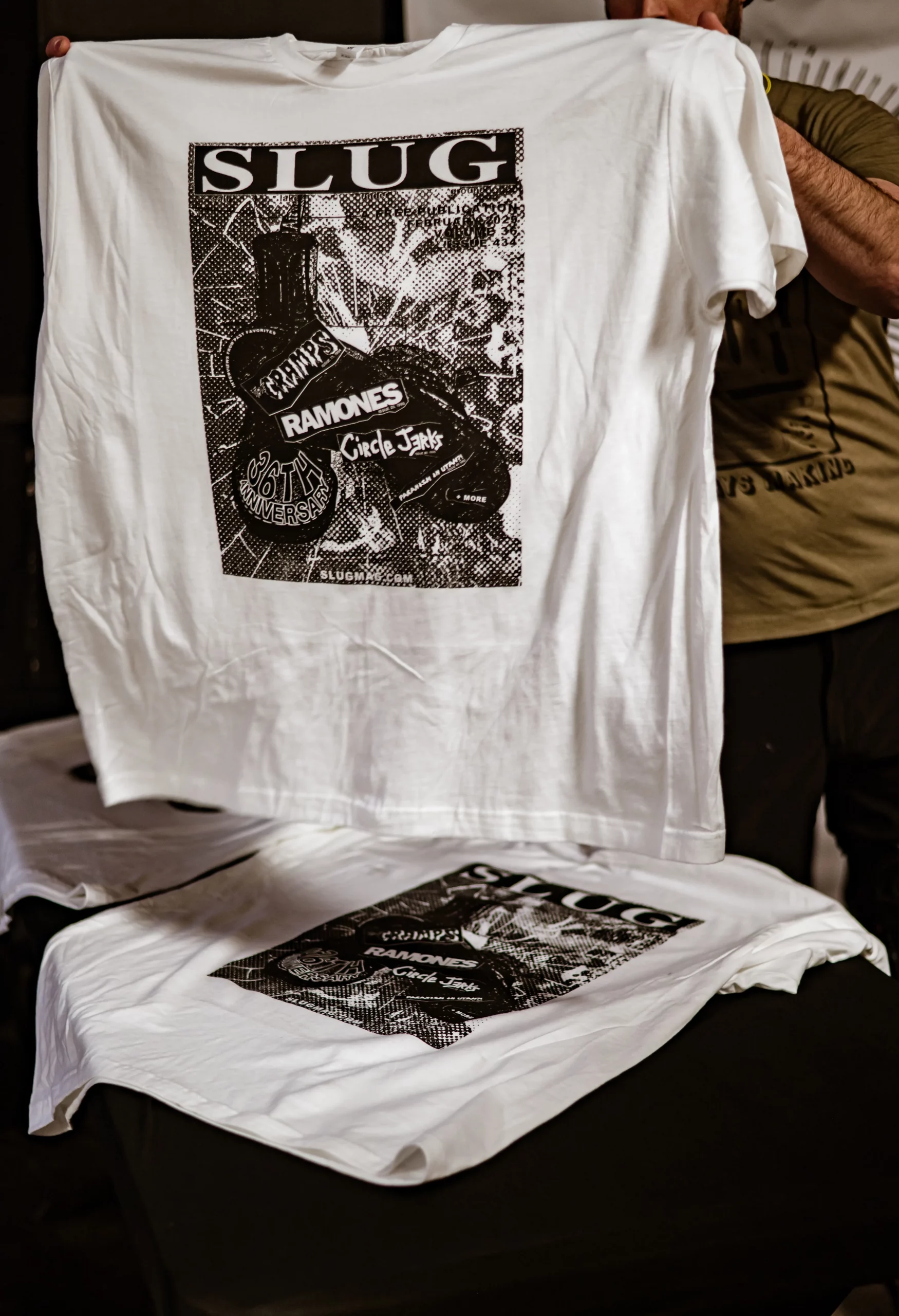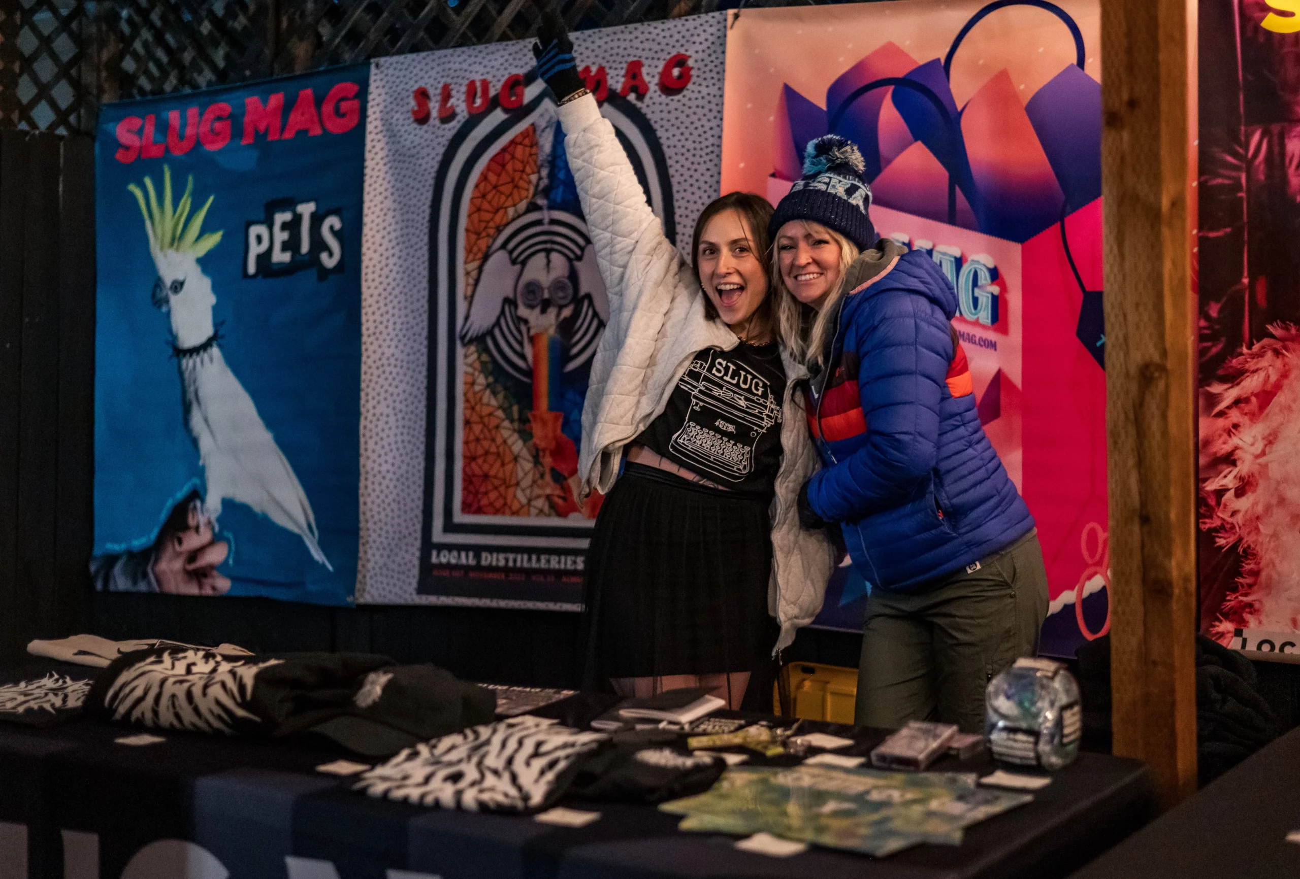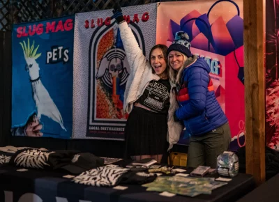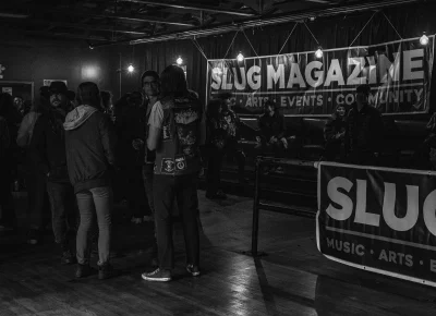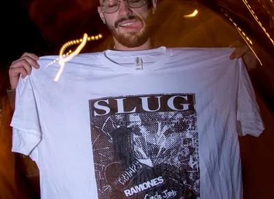 Guests who joined the party came from all walks and musical tastes, from headbanging punk rockers to lo-fi retro enjoyers. Those who really wanted a night to remember could get their own piece of SLUG Magazine merch, including a freshly screen-printed T-shirt by Ritual Print Company with February’s issue cover right on the chest. In between sets, guests could even listen to a special, live-recorded episode of our popular podcast SLUG Soundwaves, as Producer Nathan Mcquiveyand Assistant Editor William Hugheschit-chatted with bands fresh off the high of a live set.