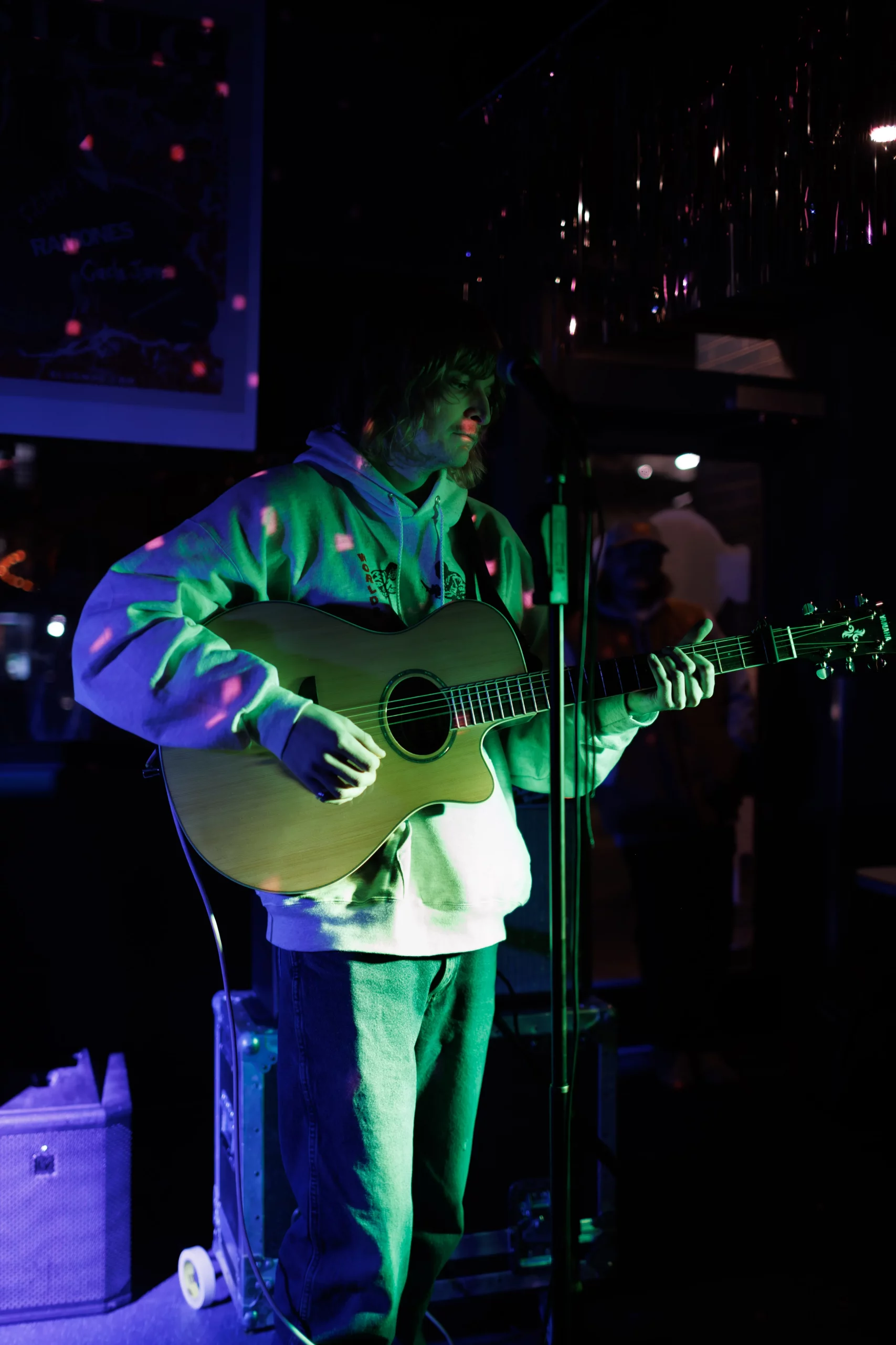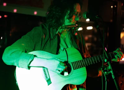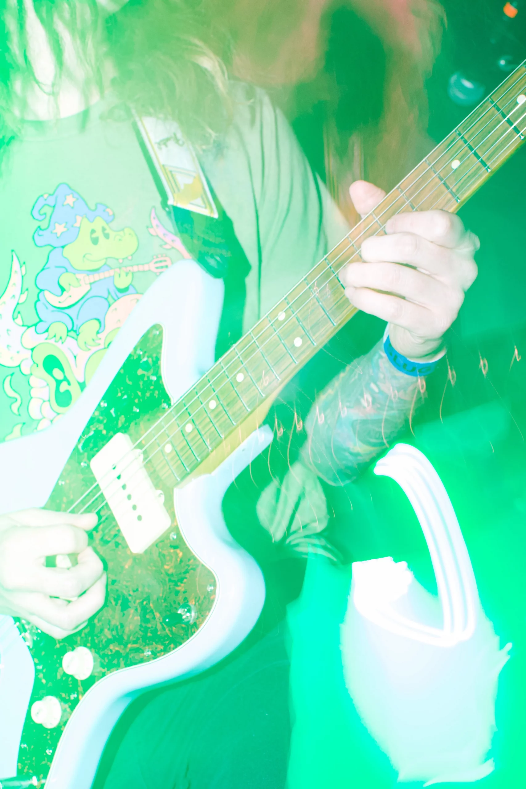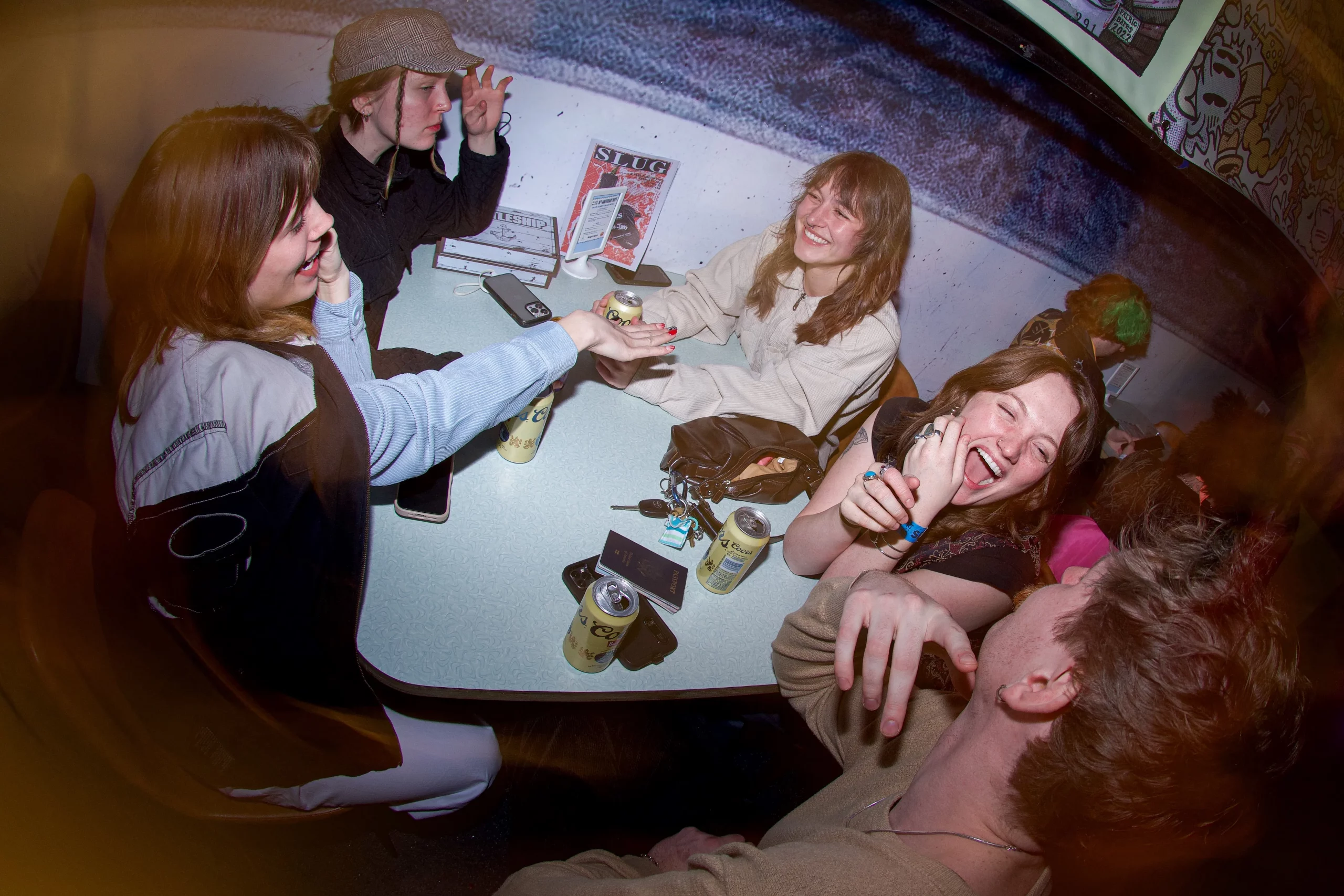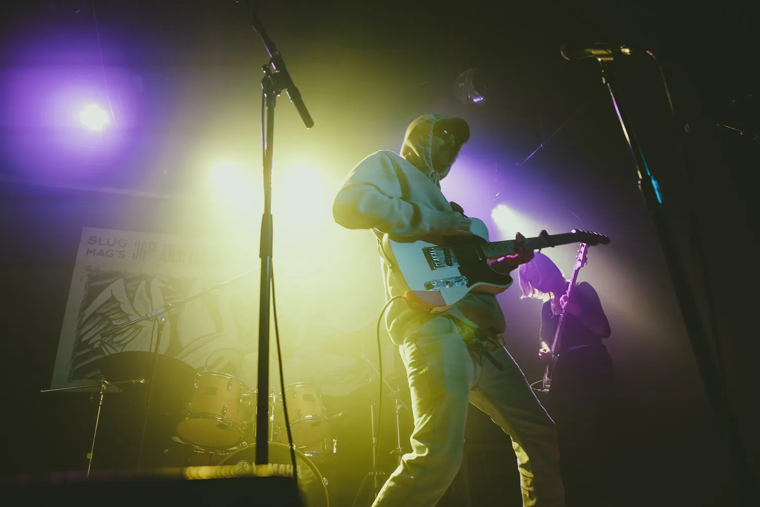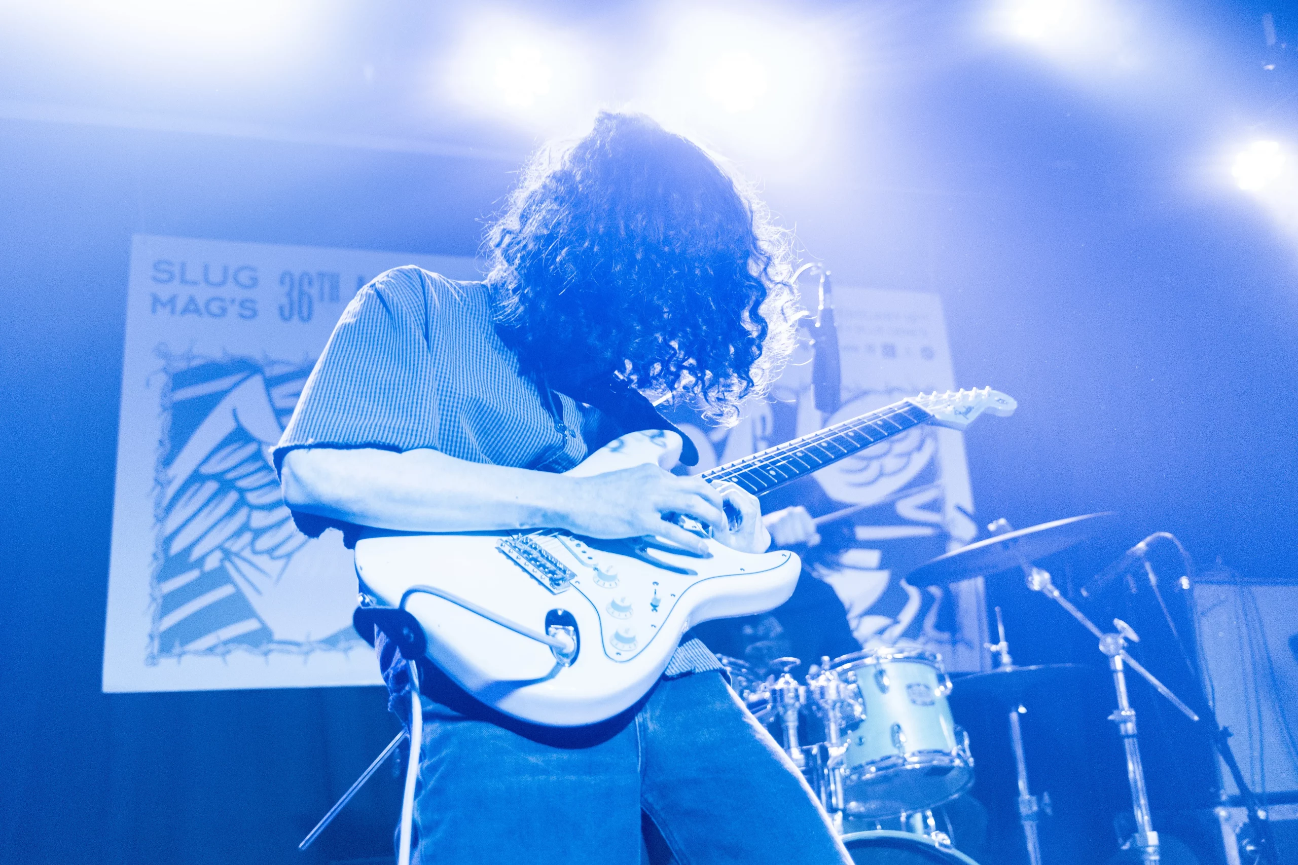 Guests who joined the party came from all walks and musical tastes, from headbanging punk rockers to lo-fi retro enjoyers. Those who really wanted a night to remember could get their own piece of SLUG Magazine merch, including a freshly screen-printed T-shirt by Ritual Print Company with February’s issue cover right on the chest. In between sets, guests could even listen to a special, live-recorded episode of our popular podcast SLUG Soundwaves, as Producer Nathan Mcquiveyand Assistant Editor William Hugheschit-chatted with bands fresh off the high of a live set.
