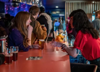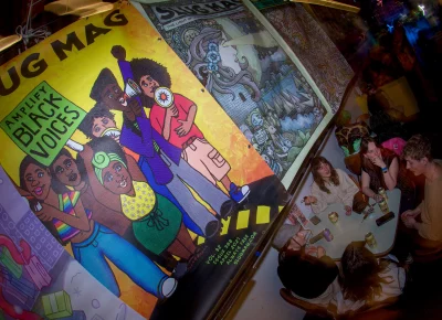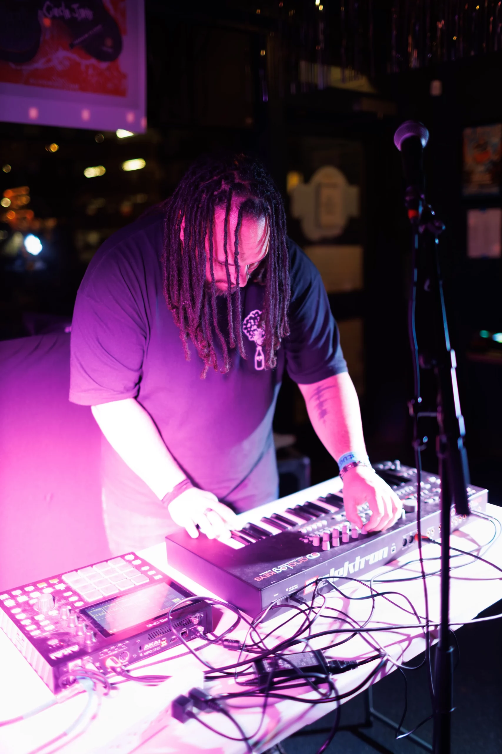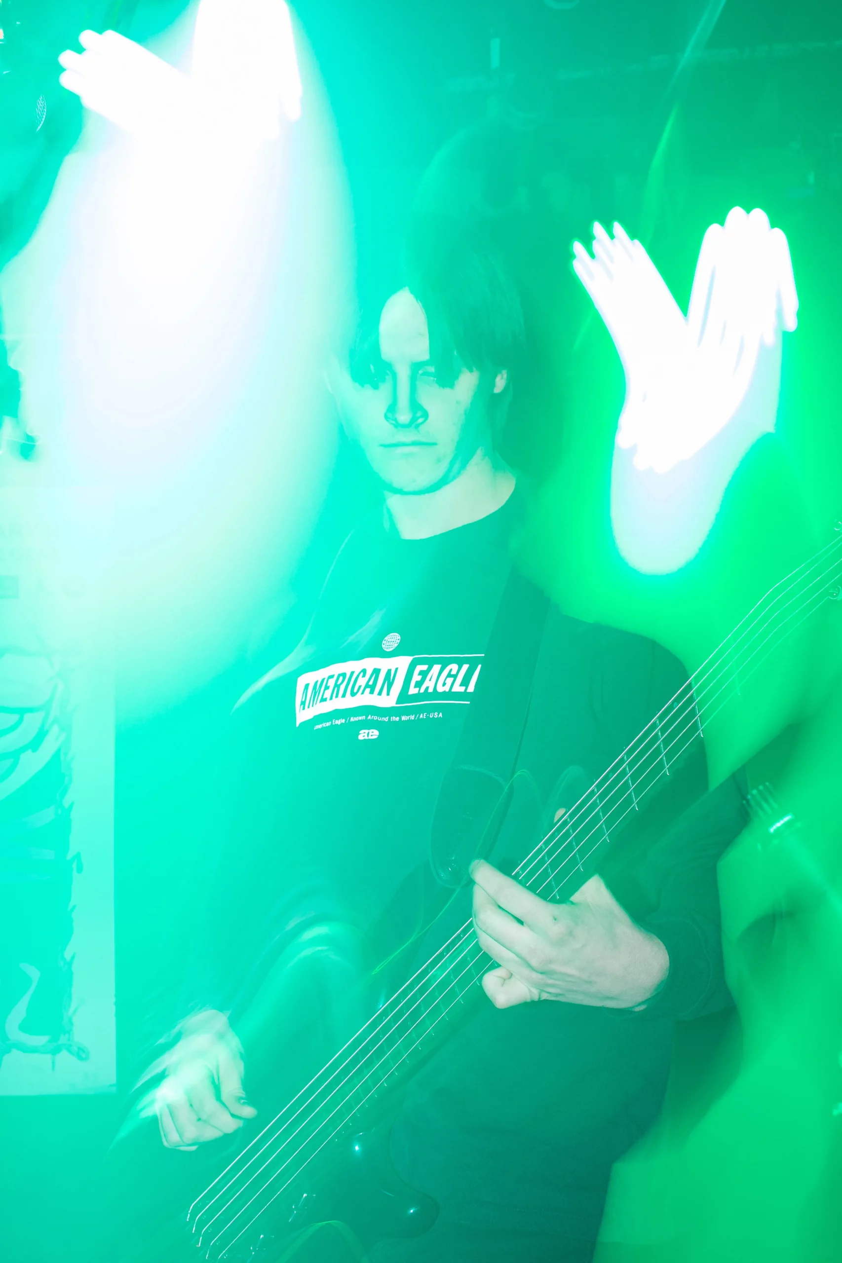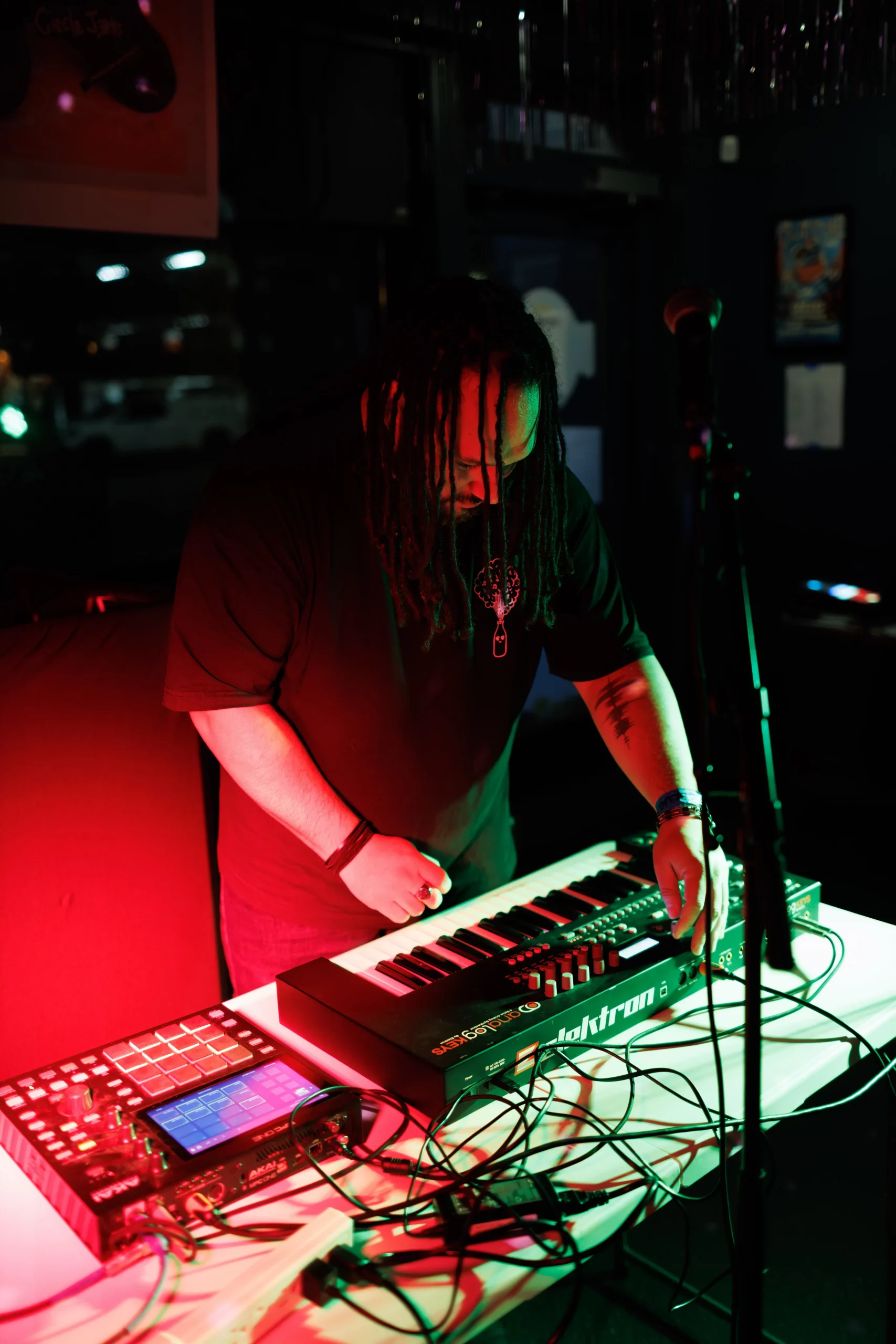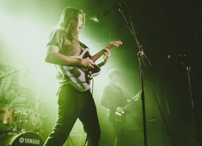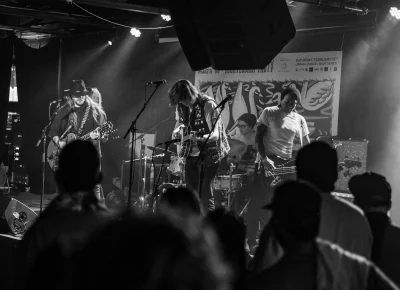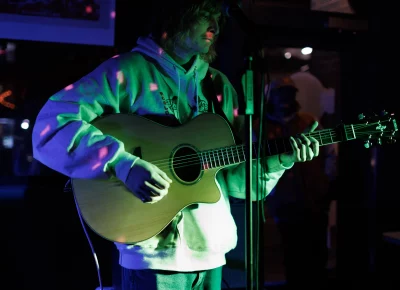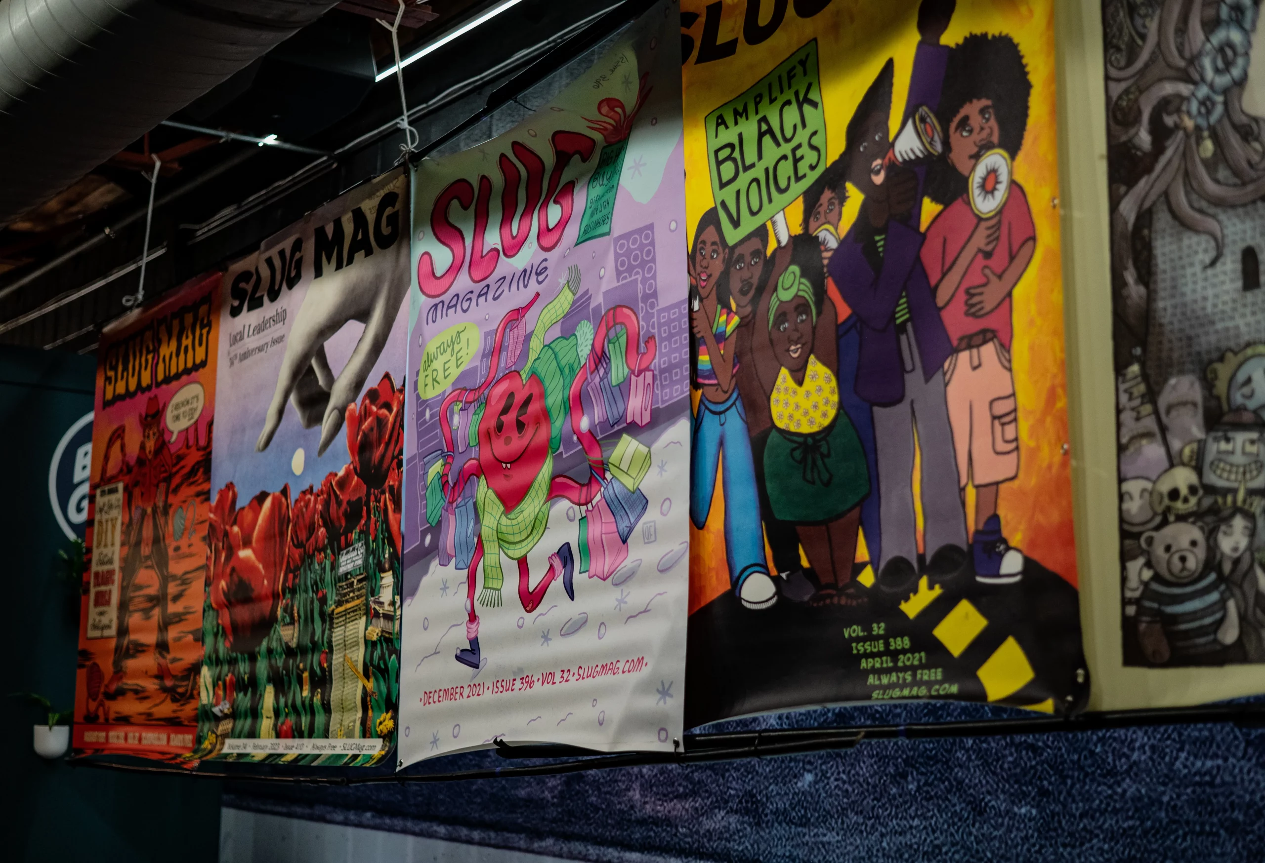 Guests who joined the party came from all walks and musical tastes, from headbanging punk rockers to lo-fi retro enjoyers. Those who really wanted a night to remember could get their own piece of SLUG Magazine merch, including a freshly screen-printed T-shirt by Ritual Print Company with February’s issue cover right on the chest. In between sets, guests could even listen to a special, live-recorded episode of our popular podcast SLUG Soundwaves, as Producer Nathan Mcquiveyand Assistant Editor William Hugheschit-chatted with bands fresh off the high of a live set.
