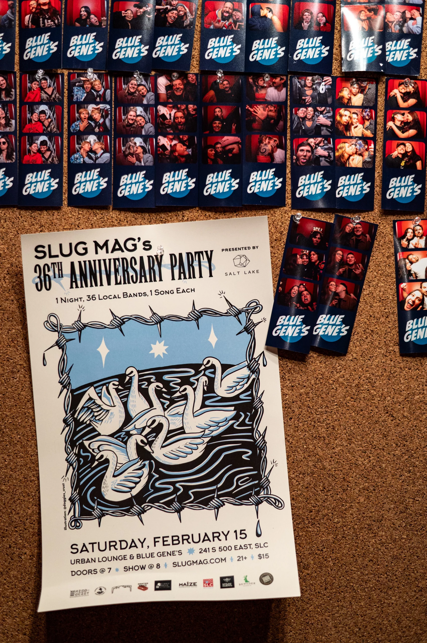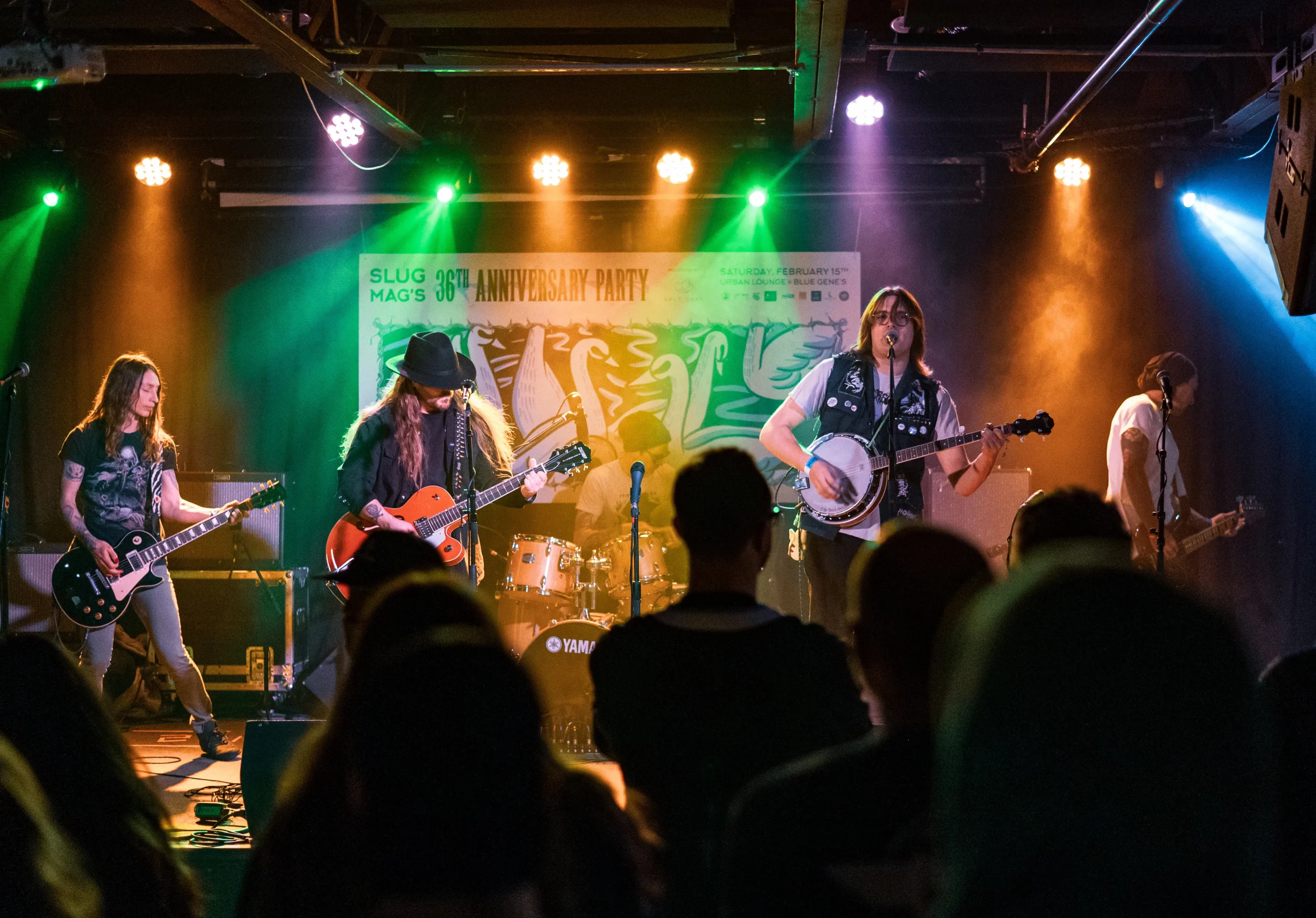 That’s a wrap, ladies and gentlemen! On the shivering, nose-biting night of Saturday, February 15, SLUG Magazine rocked the house (or houses) to celebrate three and half decades of local music and alternative communities at our 36th Anniversary Party! Based out of both Blue Gene’s and Urban Lounge, this sold-out, larger-than-life event showcased 36 bands and artists, each given three minutes to blow the brains out of the audience. Between heavy-hearted chord riffs and spirit-lifting synths, attendees partook in handcrafted, exclusive cocktails like the “Tart Typewriter” and “Hot Off the Press,” featuring local spirits from Dented Brick Distillery and Eight Settlers Distillery.