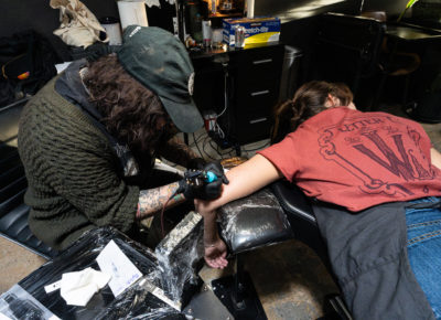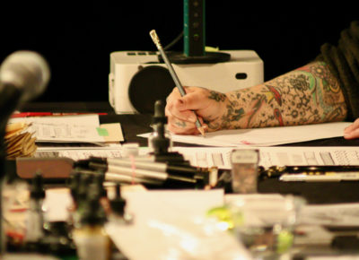 April 11 brought the next batch of workshops, with Aaron Draplin speaking on “Action, Affirmation and Awesomeness” and Austin Namba teaching “Intro to Sign Painting.” A food-truck-filled lunch break fueled the attendees before the next workshops: “Linocut Lettering” with Jessica Hische and Noel B. Weber’s “Sketch to Sign.” Aaron Draplin was the keynote speaker for the afternoon before the conference ended with the LetterWest After Party at Lucid Tattoo, complete with food, drinks, flash tattoos and high spirits of celebration.