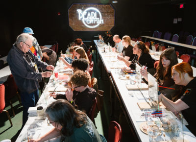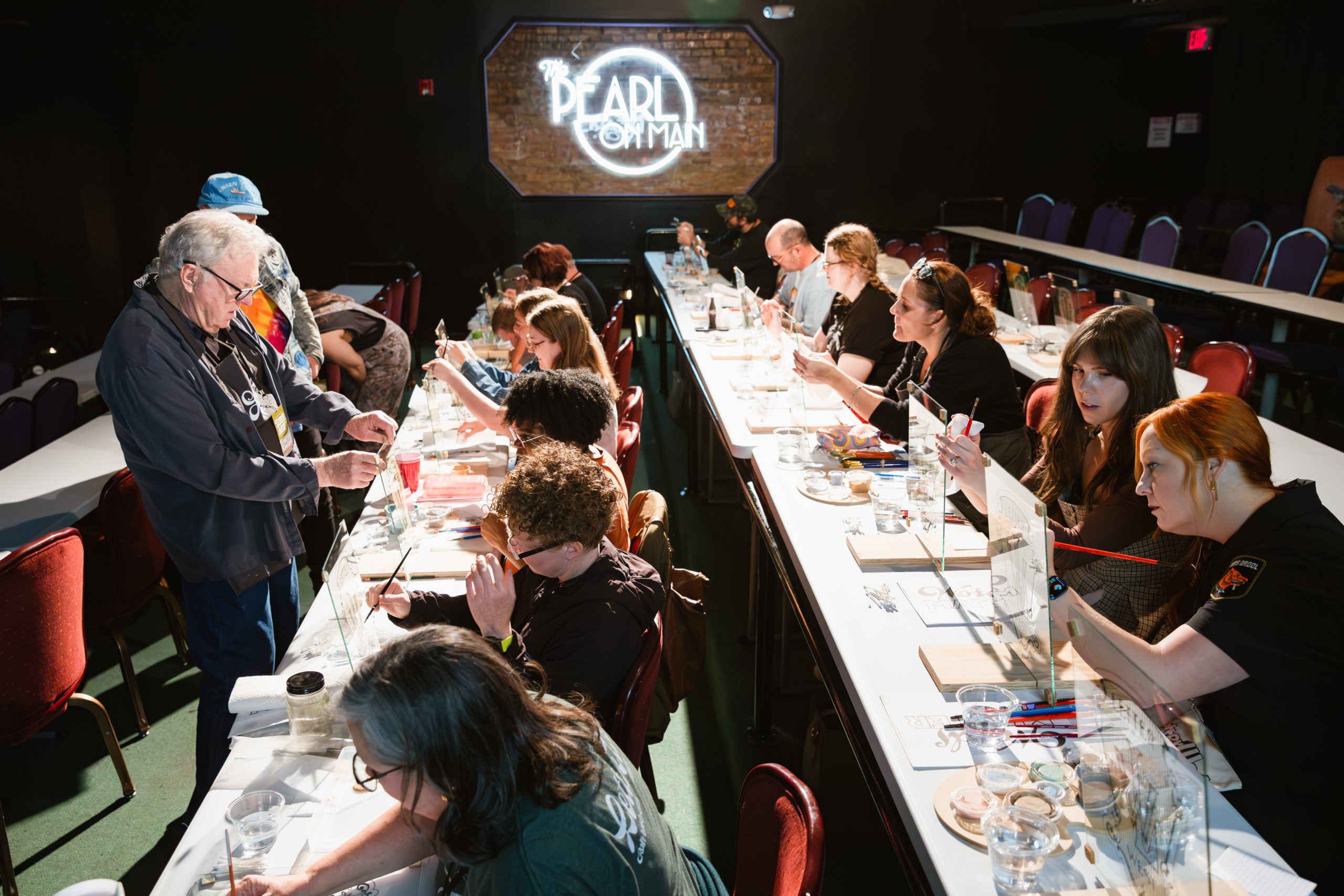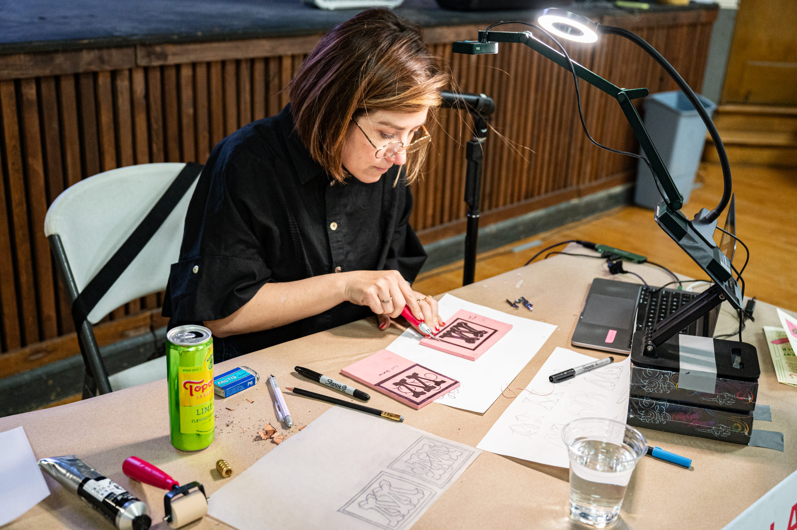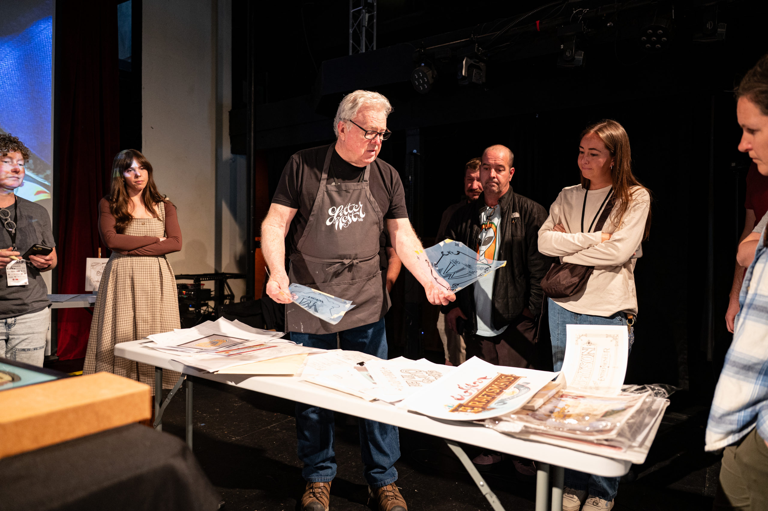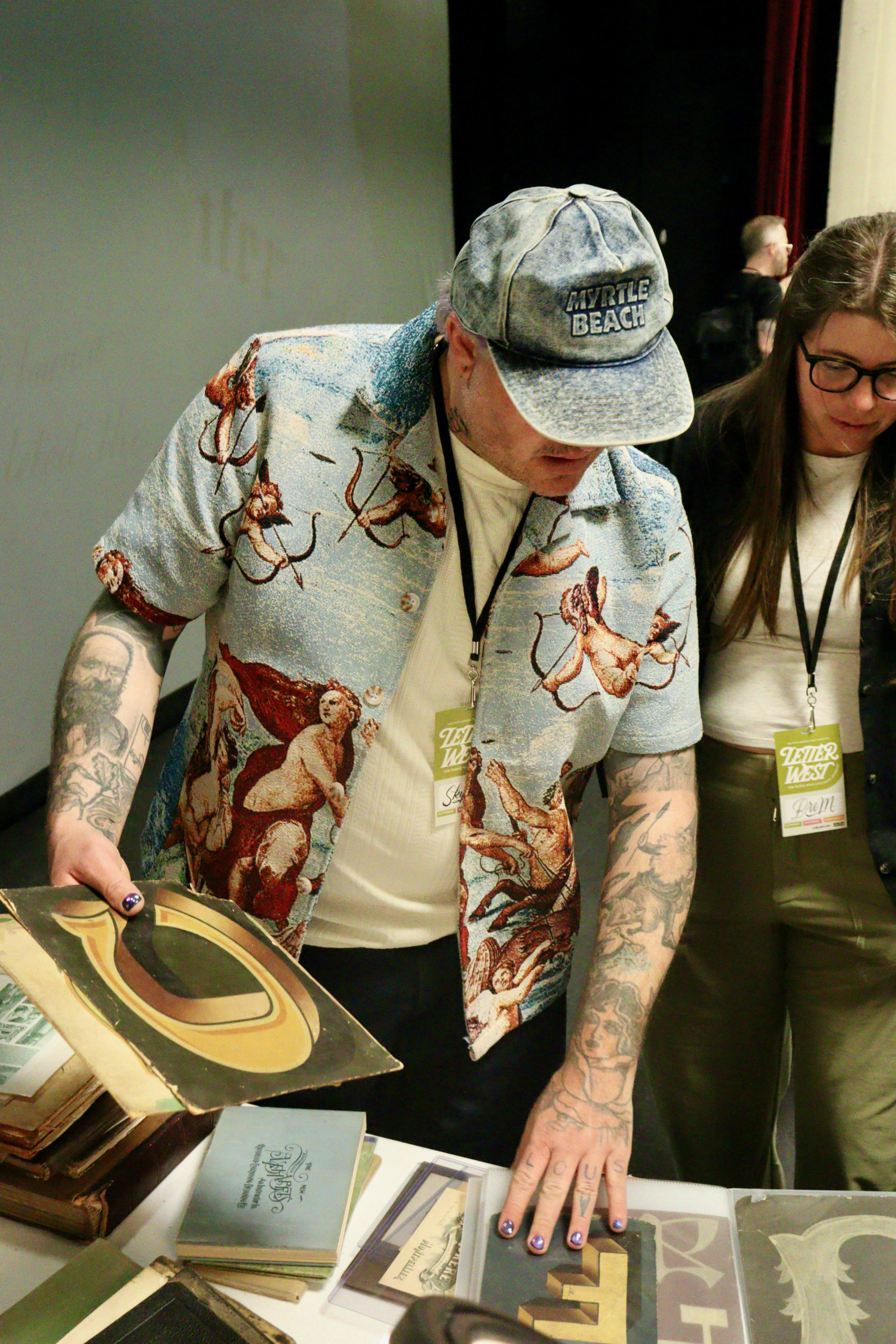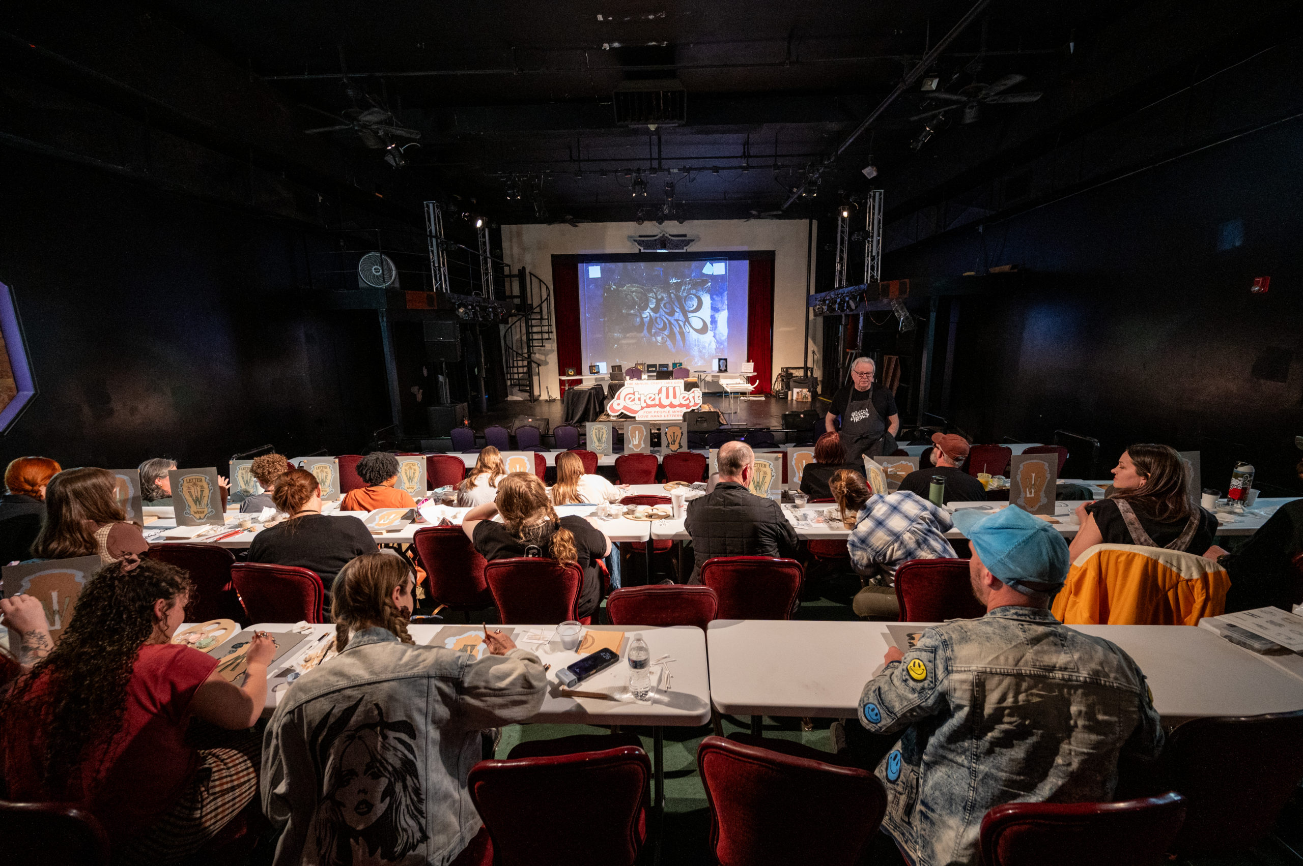 The conference kicked off with a meetup at Old Towne Tavern, hosted by muralist The Letter Mermaid. The next day saw a sticker swap at Cactus & Tropicals hosted by Melissa Esplin. Workshops took place at The Pearl on Main, with Letter Queen teaching the “History of Script in Print” and Jessi Nucifora presenting “Traditional Tattoo Lettering.” The afternoon’s panel was moderated by Jordyn Gleason at the Midvale Performing Arts Center.