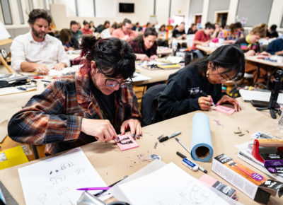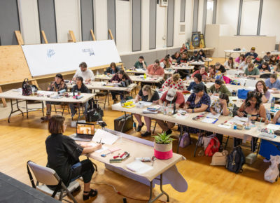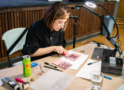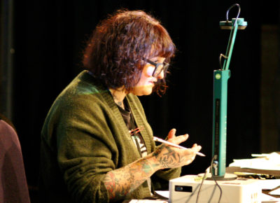 The conference lasted from the evening of April 9 to April 11, taking attendees around the Midvale Main Arts & Culture District. This year’s conference featured presenters Jessica Hische, Noel B. Weber, Aaron Draplin, Austin Namba, Letter Queen and Jessi Nucifora: artists specialized in various niches of hand-lettering such as gold leaf glass work, calligraphy, linocut, tattooing and graphic design.