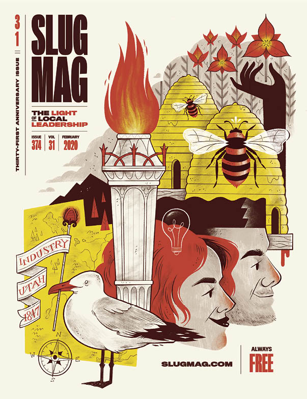 About The Cover: Our February issue cover touts the spirit of local leadership through illustrator Brett Ferrin’s digital composition. The light of leadership illuminates the symbolism used on the cover to wed local references—such as the beehive and our state bird—with the tenets of positive leadership. For more of Ferrin’s work, visit his Instagram page @brett.ferrin or website brettferrin.com.
