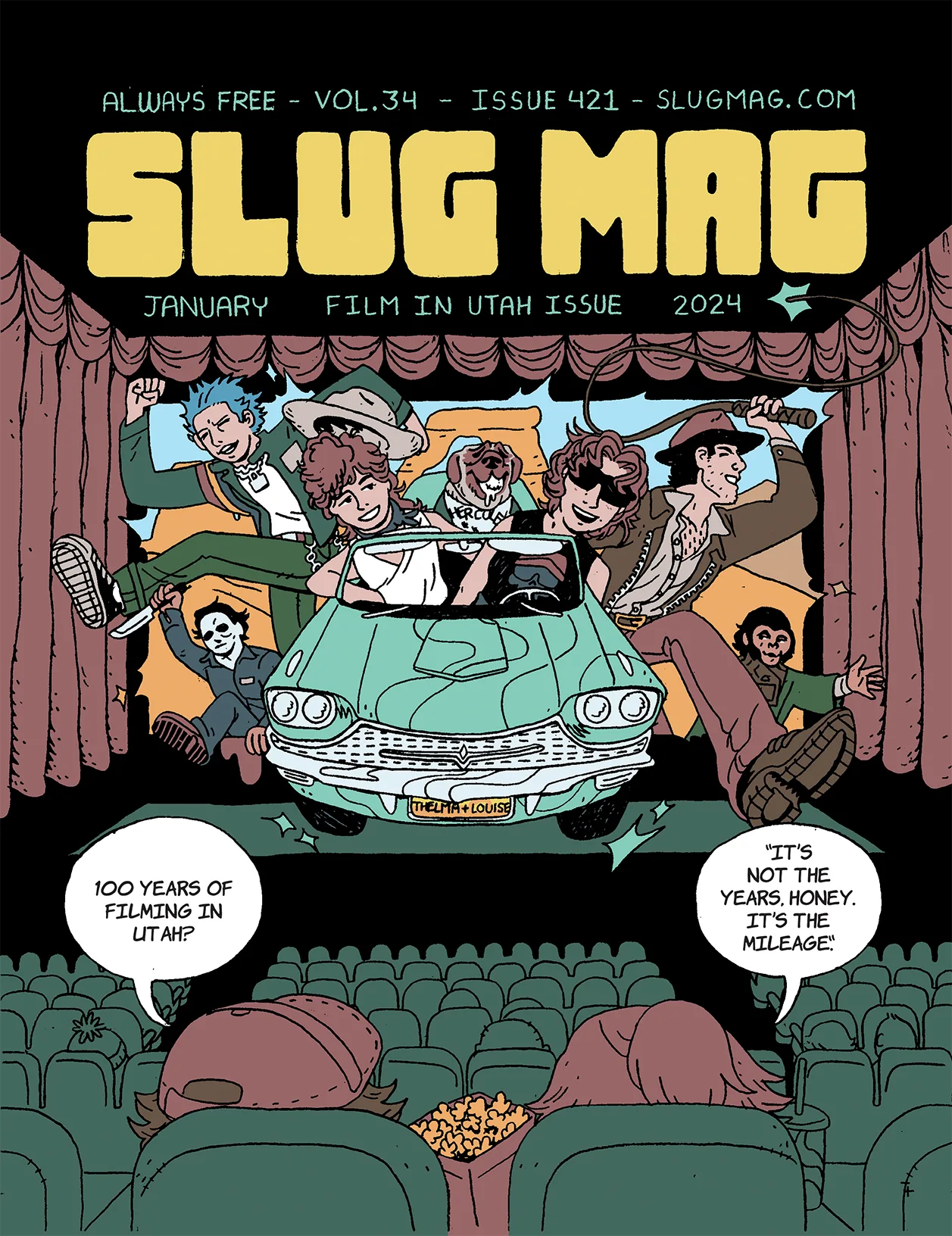 For January’s Film in Utah issue, illustrator Nathaniel Breen brings to life iconic characters from movies filmed in Utah. Did you catch the quote from Raiders of the Lost Ark? Check out their quirky comics and other art on Instagram at @mirthfulmarch.