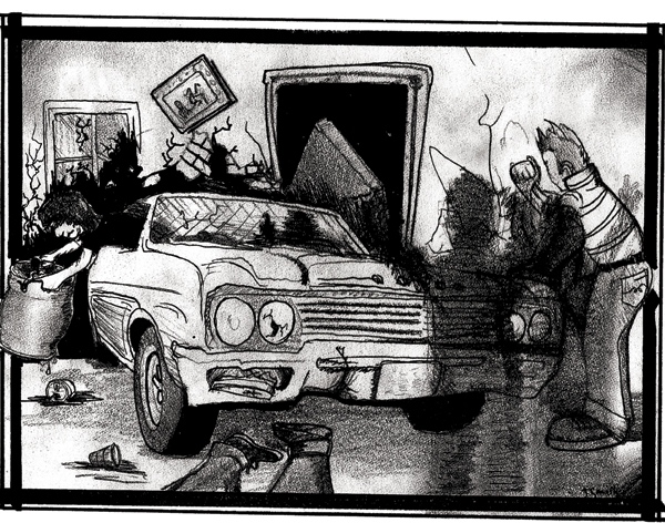 So, the last time I crashed a house party I was probably the oldest guy there. This lead to feelings of insecurity, like I kept thinking in my head I had to keep up with the kids––Show them how it’s done, you know? So I got wasted and found a hammer. Me, tools, and booze is a bad equation any way you look at it.