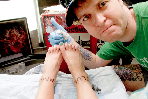 Like all my articles, this article is about me. I’m very narcissistic. This one is not about receiving my first tattoo, but giving my first tattoo. Aside from never holding a tattoo gun in my hands before, anyone who has read my zine and seen my comics knows what a terrible artist I am, although I am pretty good at drawing boobs. On July 15, Good Times was having their 11-year anniversary and celebrating by giving away $20 tattoos all day.