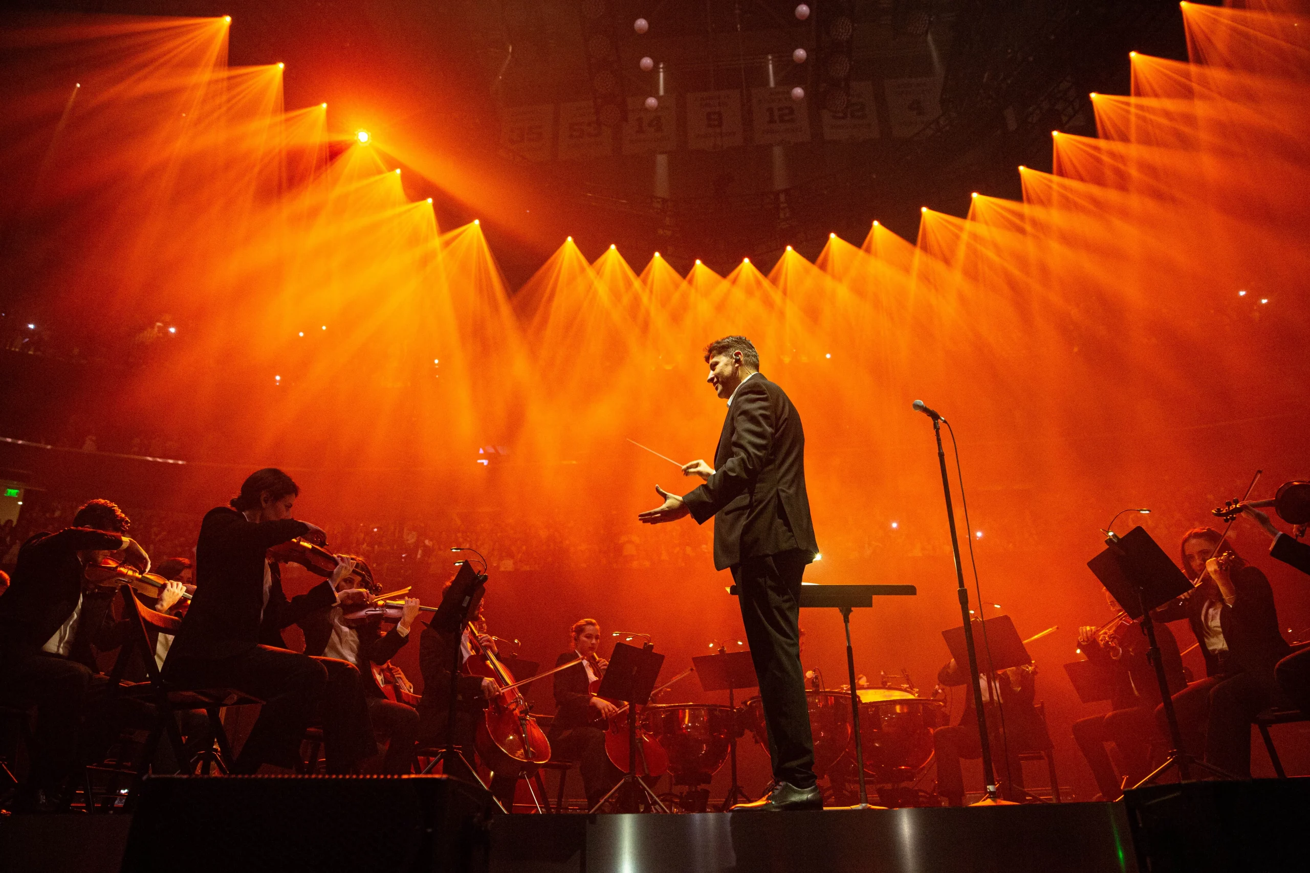 The arena crowd was a microcosm of Utah’s evolving demographics, who channeled the aesthetic of Bad Bunny’s latest release, Nadie Sabe Lo Que Va a Pasar Mañana, by donning cowboy hats and accompanying boots. As the lights dimmed, an orchestra took the rear stage and the conductor set the tone for the evening with an instrumental intro. Suspense built in the darkness—when Bad Bunny finally appeared, clad in a black suit and head covered in a black cloth, singing his titular track “Nadie Sabe” and flowing into “Monaco,” the crowd at the sold-out venue roared.