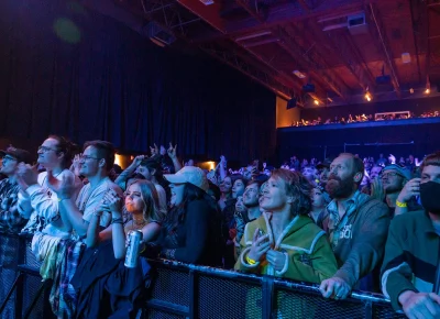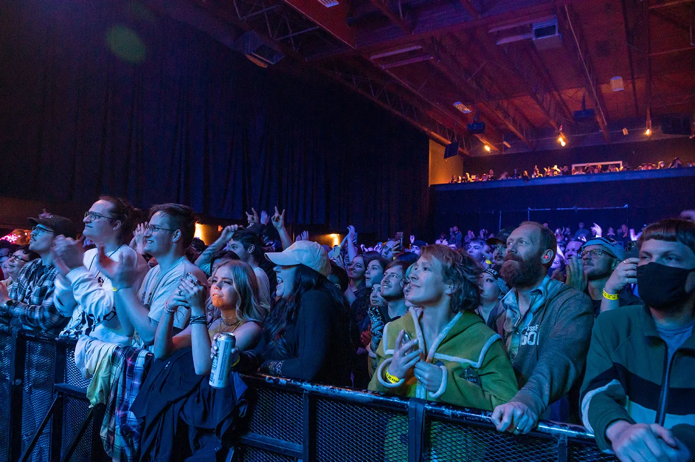 The venue was slowly filling with people trickling into The Grand venue. Upon entering, there were merch booths on the side of the room and a concession stand selling snacks and drinks. Folks of all ages stood inside the separate room, dancing, singing and generally enjoying the live music.