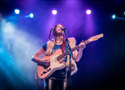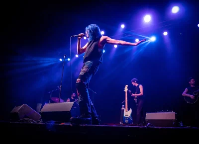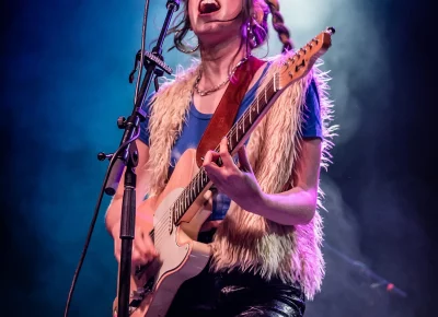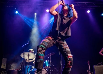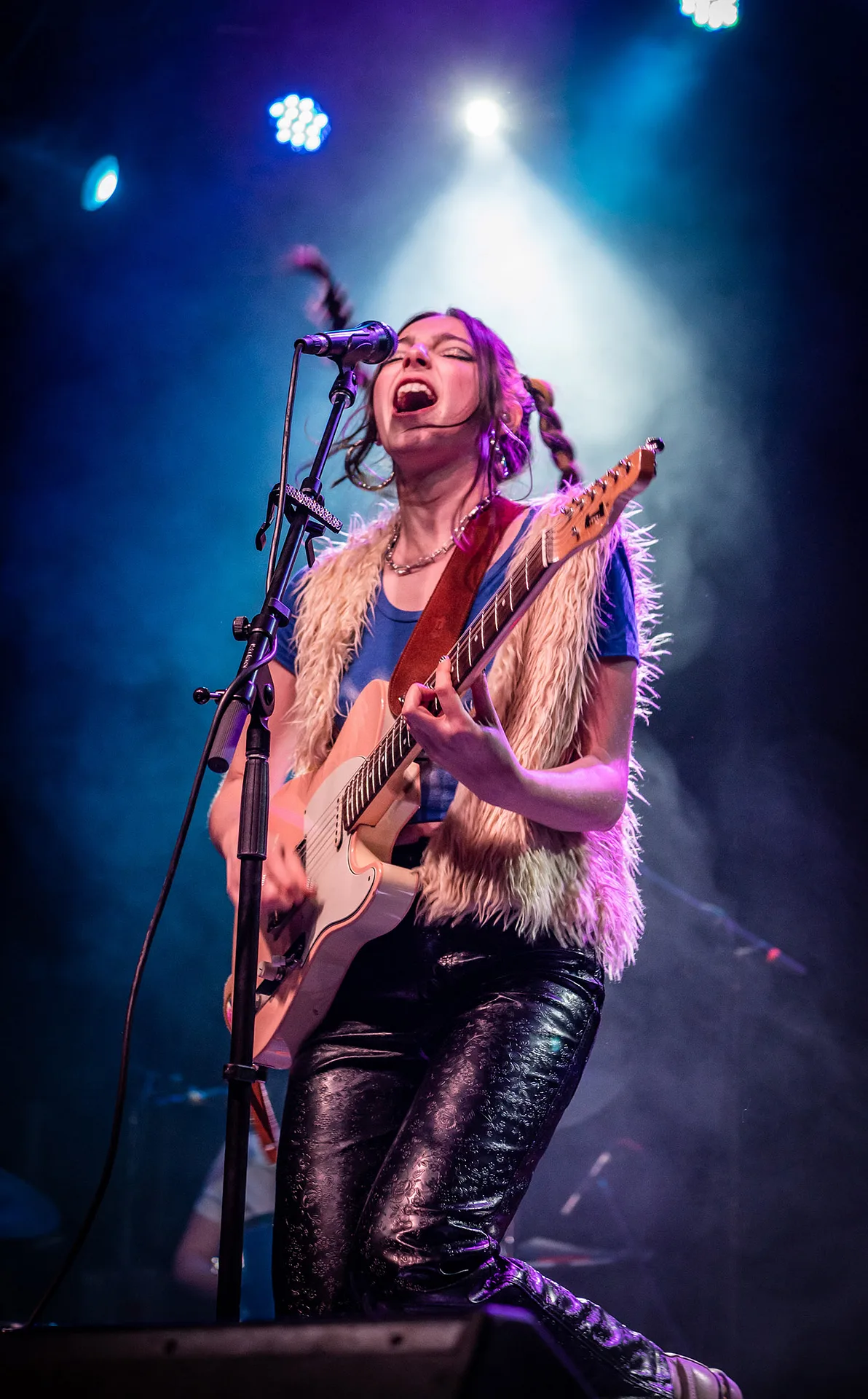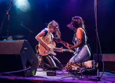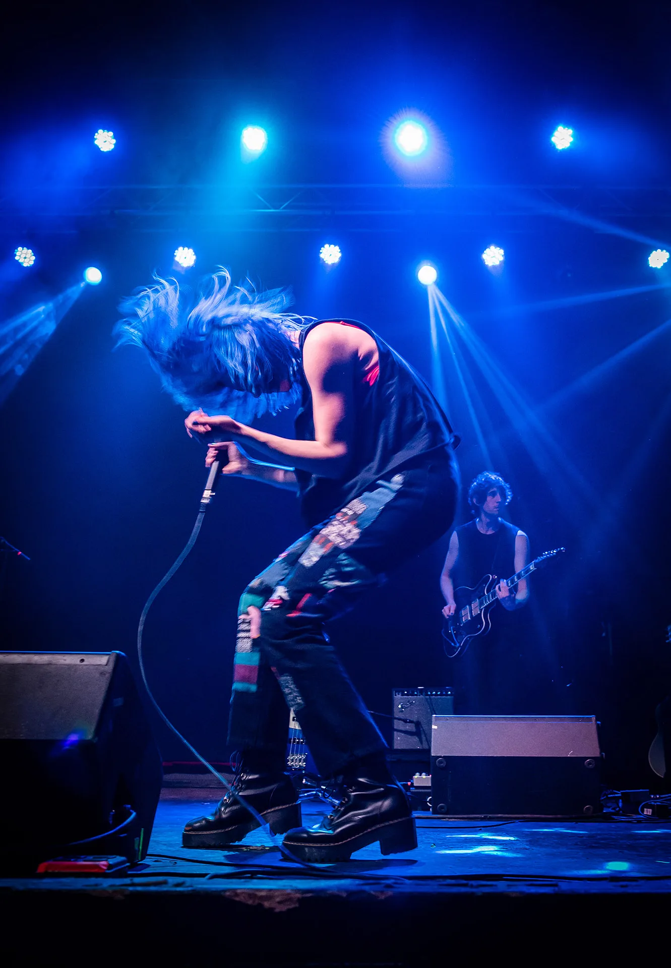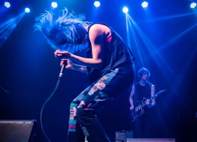 Kid Sistr is an all-women, New-York-born indie trio, comprising Sabel on guitar, Sara Keden on bass and Rebecca Webster on drums. They covered “Sabotage” by the Beastie Boys, and the crowd loved to sing along. It was a fun time being back listening to live music after the past few years; there was high energy in the room as Kid Sistr got the crowd jamming out.