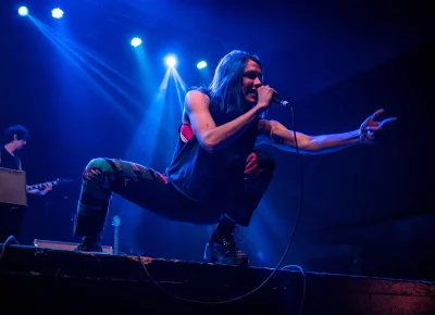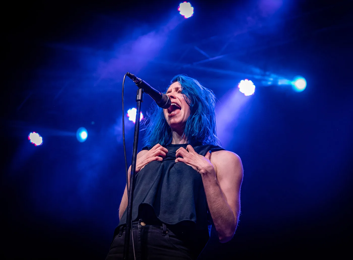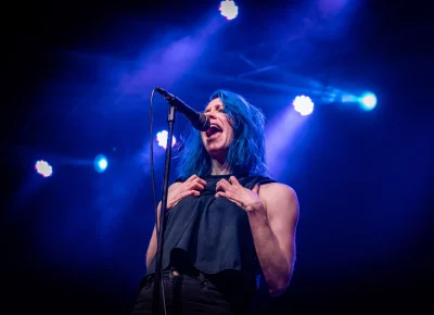 As Kid Sistr wrapped up their set, we headed up stairs to the 21+ mezzanine. Folks were grabbing drinks and rocking out above the crowd. It had a great view of the stage as K.Flay began to perform. During the opener, she announced that her and the whole team had quickly jumped on flights to make the show, leaving behind all their gear including instruments. They even had to borrow a bass from Kid Sistr, who happily obliged.