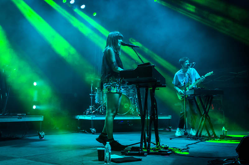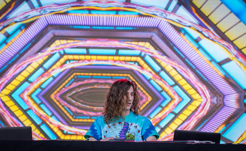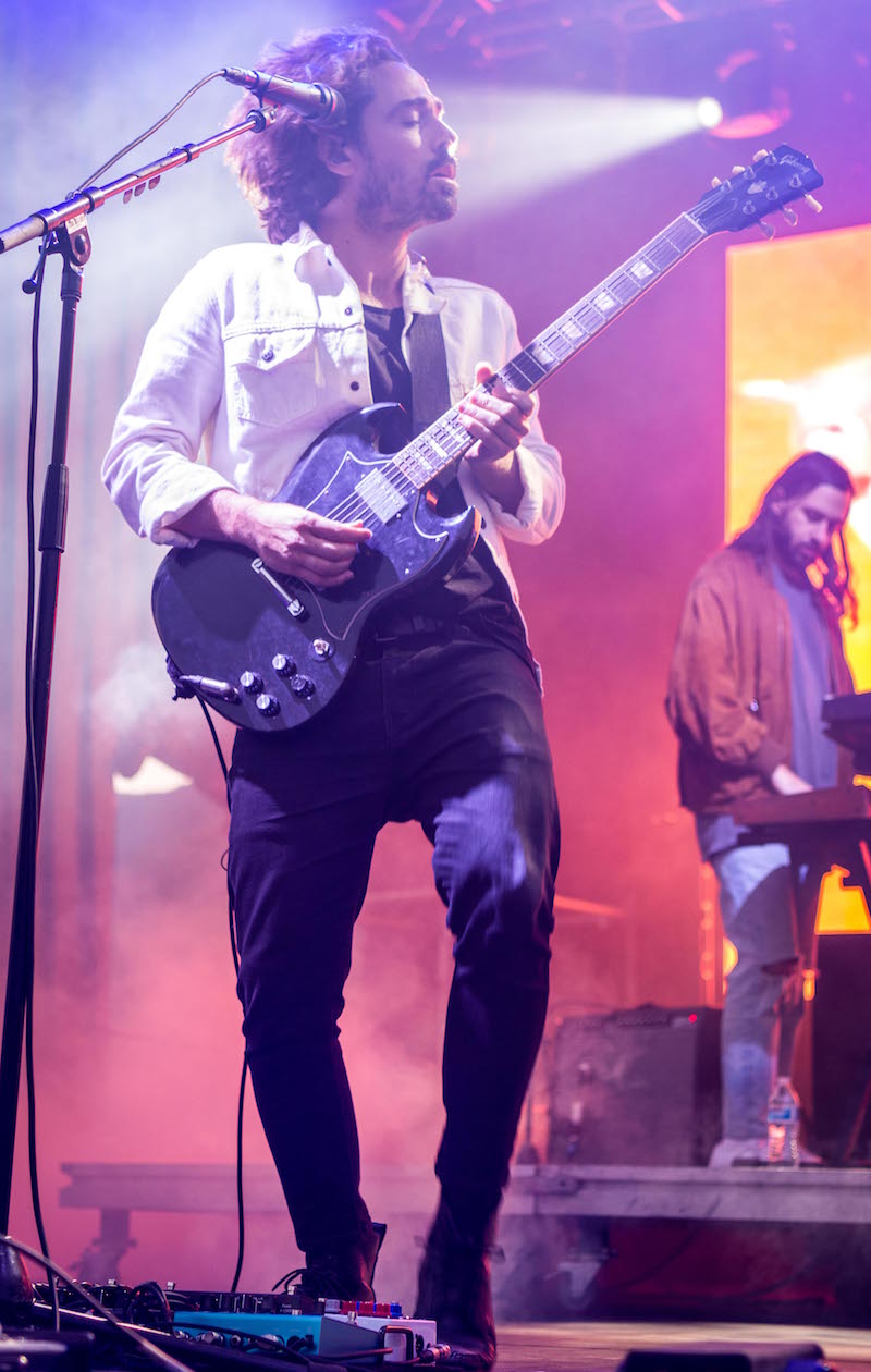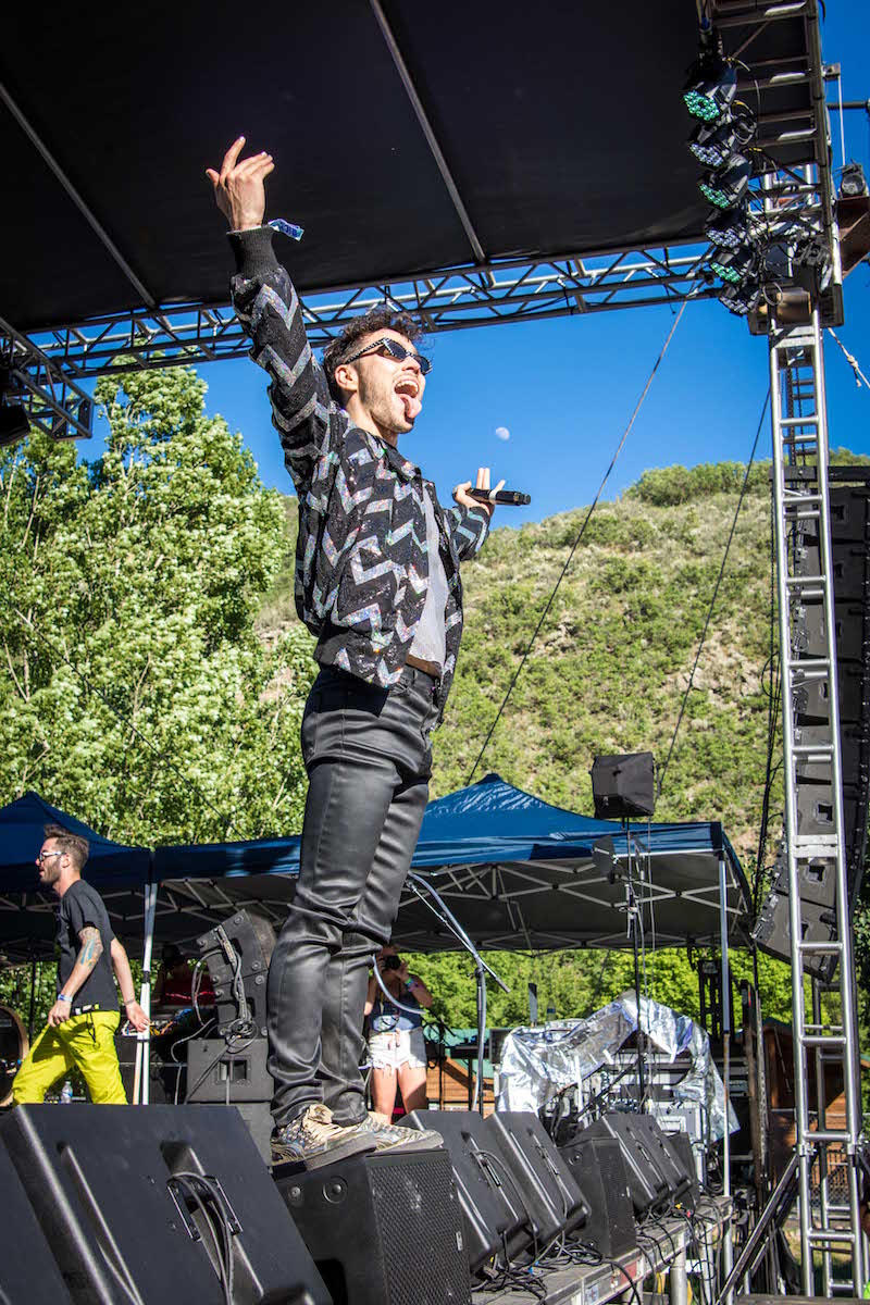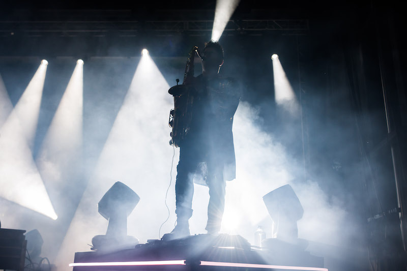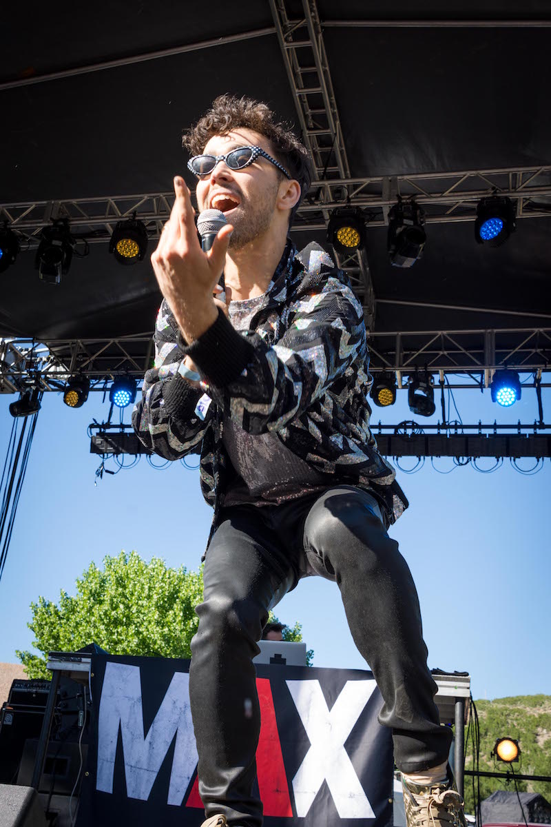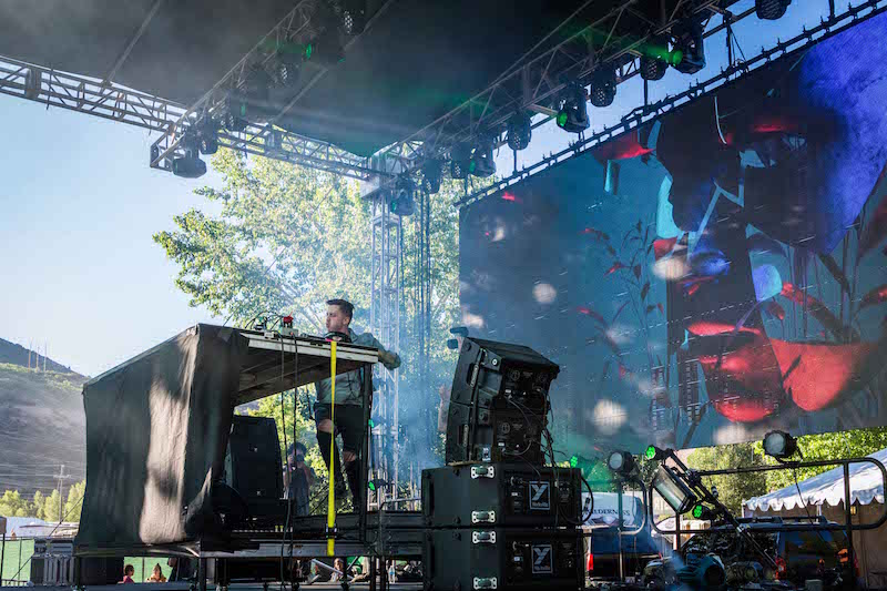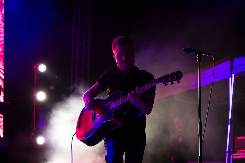 Hayden James plays in the colorful lights of the Bonanza shade stage.