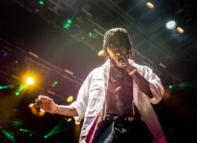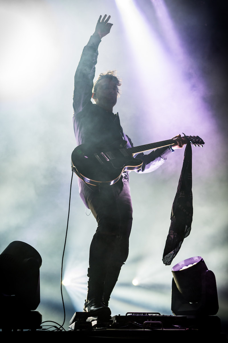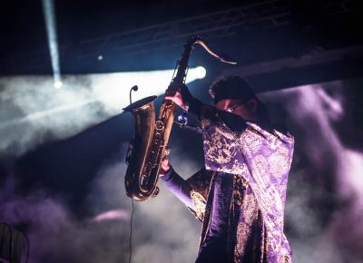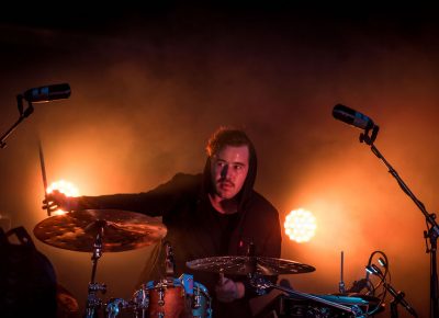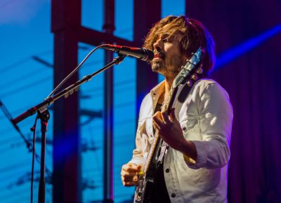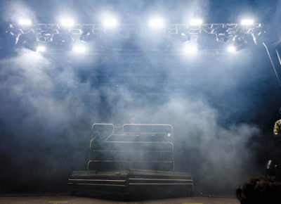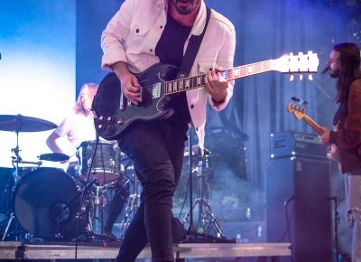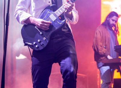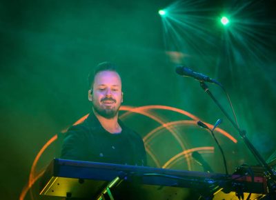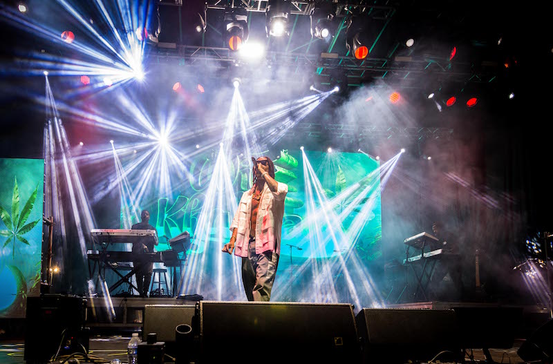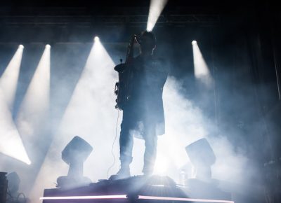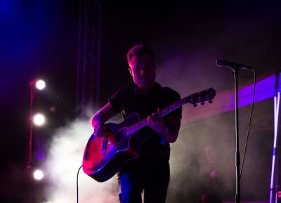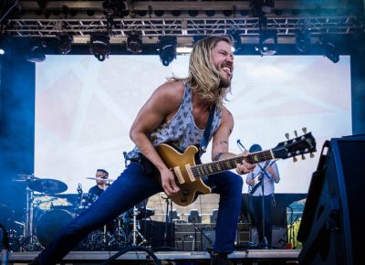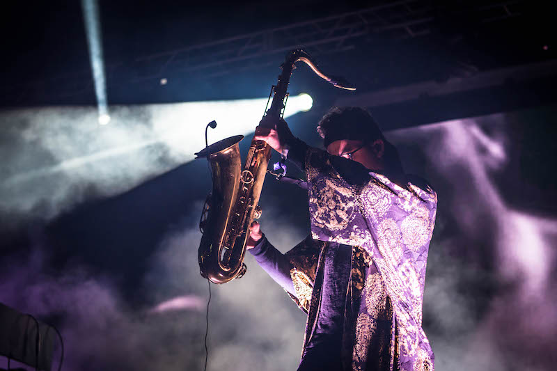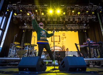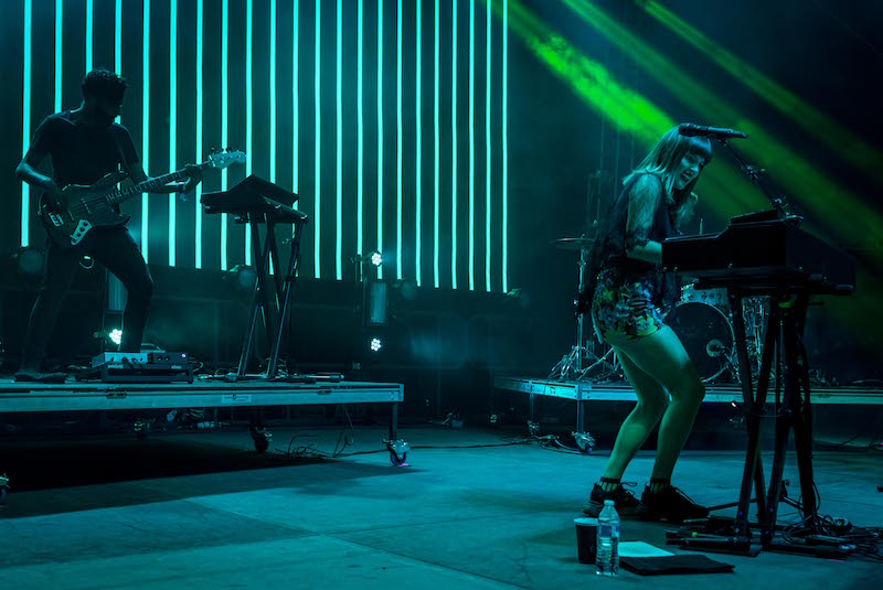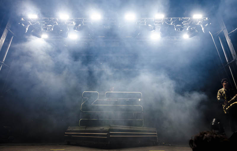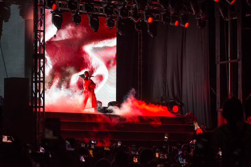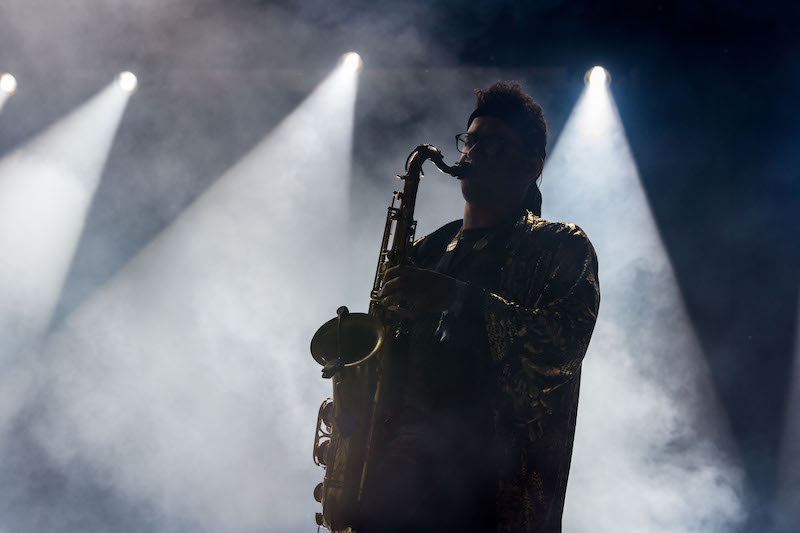 Hayden James plays in the colorful lights of the Bonanza shade stage.