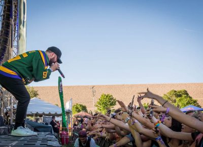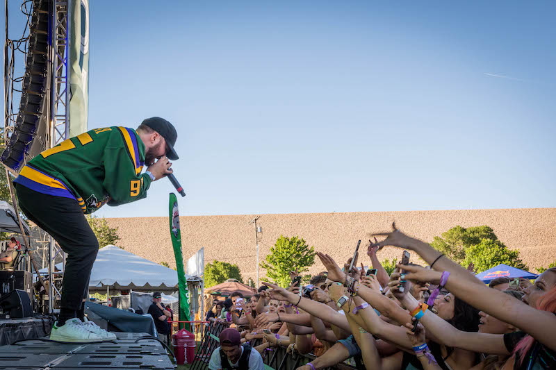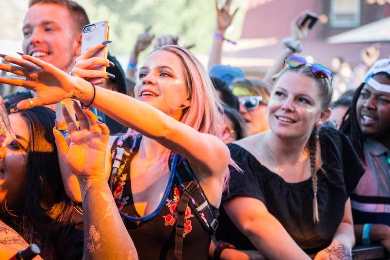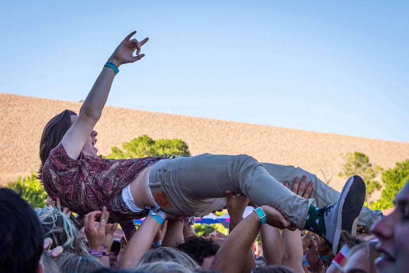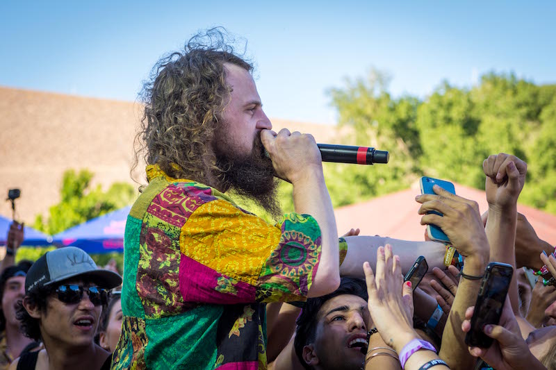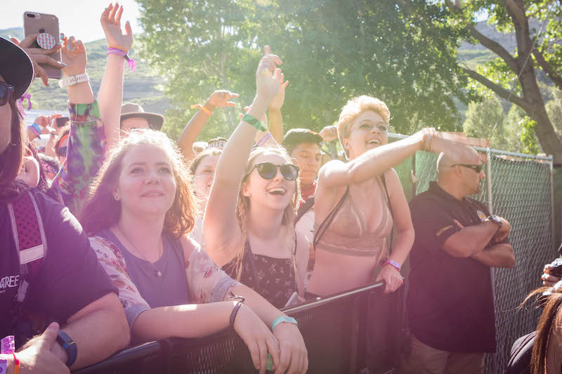 Split between two stages, the arena was interlaced with vendors, food and entertainment. Top-up stations and merch booths greeted guests at the door, followed by booze, food and booths. From henna to CBD oil, the Vendor Village had local businesses selling and promoting their wares. Moving further in, food trucks lined the path with the delicious treats of pork sandwiches, mini donuts and Hawaiian rice bowls. Housing could be found at the end of the path, Between camping, cabins and Airbnbs, there was a plethora of places to stay for the three-day party. Droves of people flooded the venue, awaiting the joy that comes from good music, friends and sun.