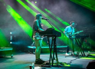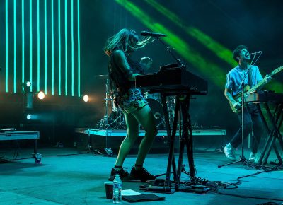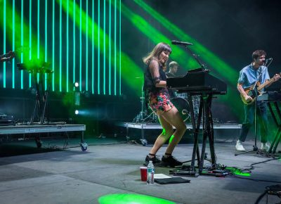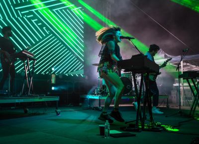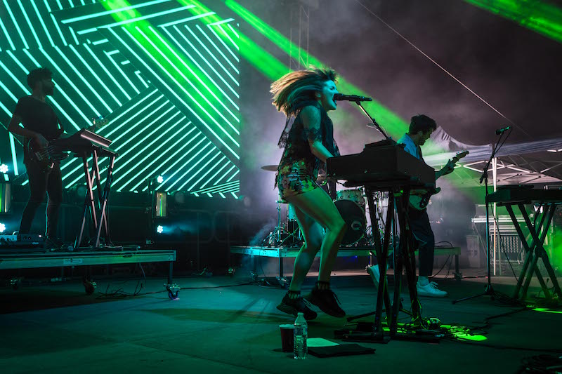 Bouncing between the Shade stage and the Bonanza stage, the music began to float through the air. The first night brought the electronic, hypnotic genres of music. Among them were lovely musicians like MΛX, Oh Wonder, Rufus du Sol and ZHU. MΛX was a joy to see, dancing and singing in a Michael Jackson–like fashion, silver shirt and shimmering pants glittering in the sun. Rufus du Sol kept the crowd going, dazzling the mood with orange and yellow lights and deep dance music. Long after the sun had set, Oh Wonder came on the Shade Stage. Darling, British duo Josephine Vander Gucht and Adam West partied with the crowd, glowing under the bright lights. For the headliner and final show of this electronica night, everyone headed over to the Bonanza stage, gathering for the godly wonder that is ZHU. Starting off deep, he dropped “Dreams,” immediately exciting the crowd into a frenzy of epic proportions. Playing deep into the night, fans danced until the music quieted, wandering back to their beds, turning in to ready themselves for the next days adventures.