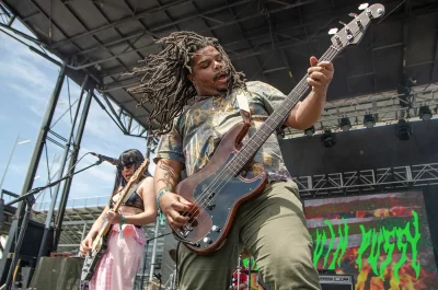 Remi Wolf band member playing a few chords before Remi takes the stage. Photo: Lmsorenon