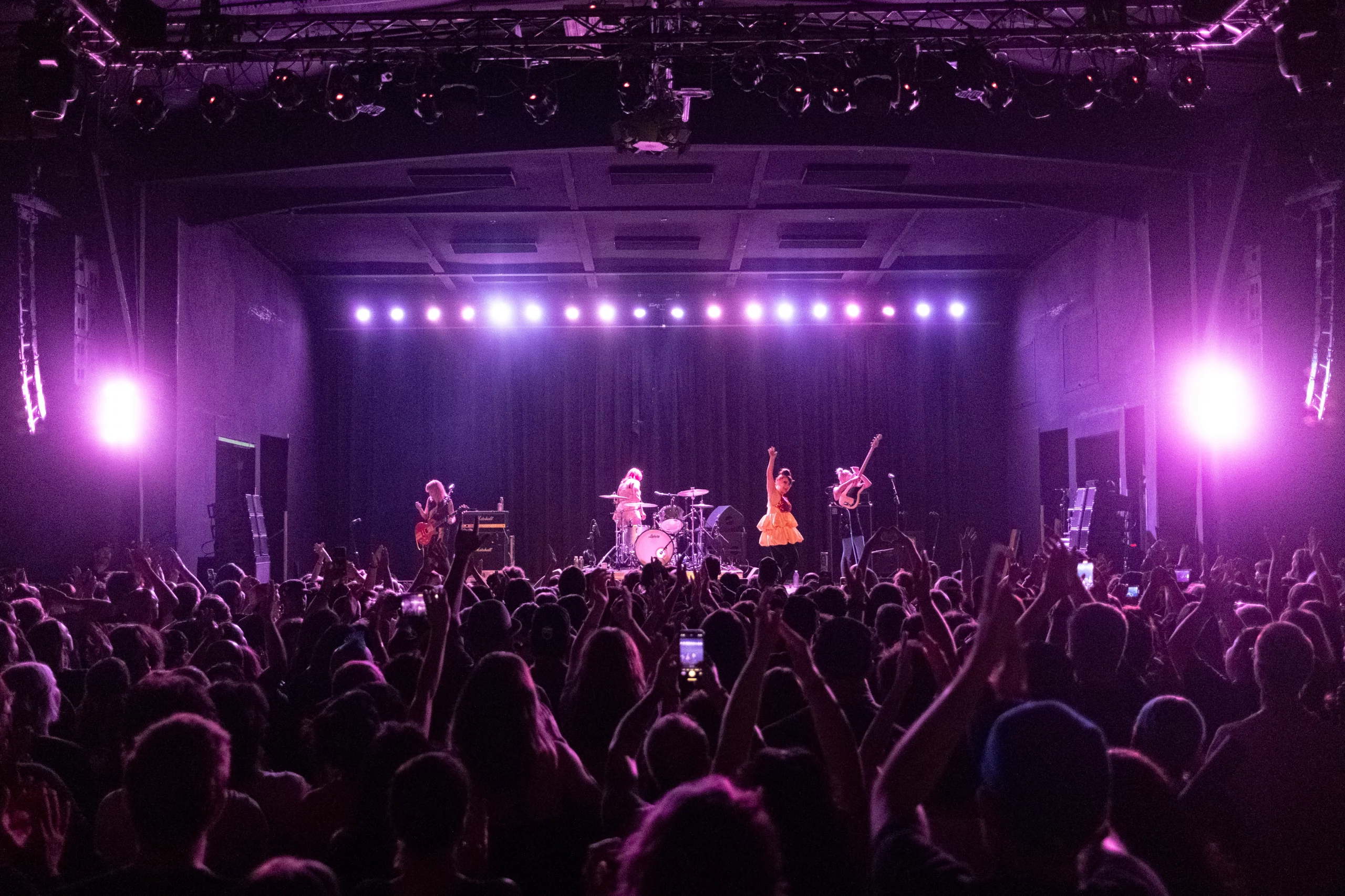 With a burst of sparkle and flounce, riot grrrl legends Bikini Kill stepped onto The Union Event Center stage for their first time in SLC to a roar of thunderous applause. The night was a blistering whirlwind of musical vigor, the air charged with the spirit of punk rock. Heads were banging, vocal cords were straining, and yes—all the girls were at the front. The night was kicked off by Blisster and Cheap Perfume, two grunge/punk rock bands that matched Bikini Kill’s classic riot grrrl sound. It was just the right amount of electric energy to fire the crowd up and keep it burning.