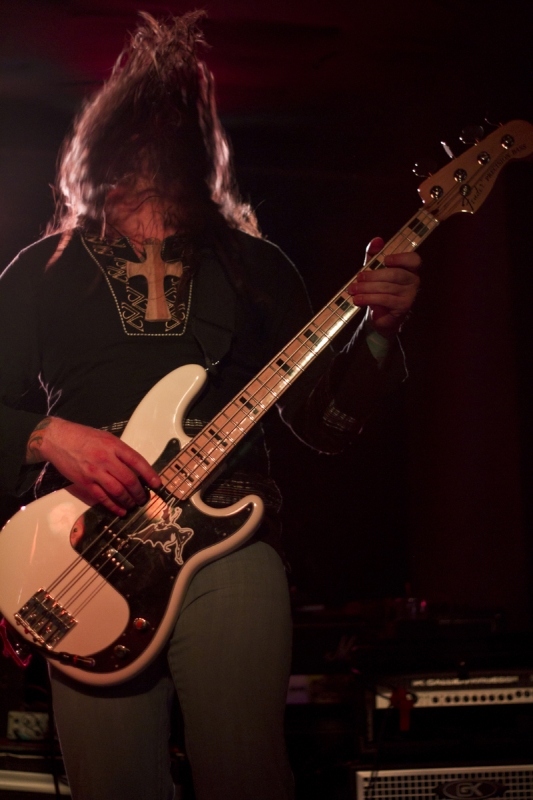 Vocalist Jeremy Sundeaus performed as a convincing Ozzy Osbourne imposter, from the closeness of his voice to his discombobulated mannerisms. He scooted about the stage clapping with a bewildered expression, much like Ozzy himself, and spoke with a British accent between songs. Andy Upchurch on bass sported light blue denim bell-bottoms and a bass tone that would make Geezer Butler proud. The mix of drums, vocals and guitars was perfectly balanced and drummer Bob Sutton’s fills were consistently well executed.