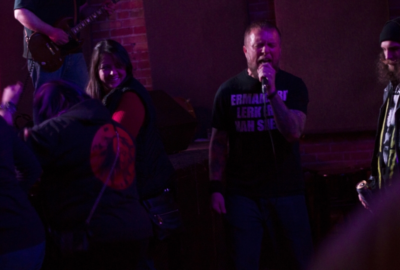 Paulcake the Mighty played bass and took part in a ceaseless crusade of harassing the human scum and Jizzmac Dan Gusha destroyed the drums. Mosh pits broke out but didn’t last long due to the puddles of bodily fluids in front of the stage, but that never dampened the fun. The audience was fired up and filthy and the blasts of drunken energy continued past last call.