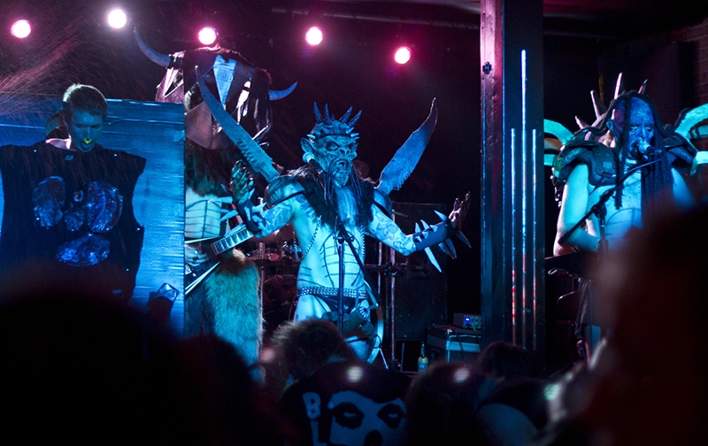 Once Thunderfist and their gear parted the stage, the red velvet curtain dropped and ghastly shadows were cast upon it. It was evident the demise of humanity was at hand. Scumdogs had risen from the grimy depths of Salt Lake City to pay homage to their Gwar overlords and slaughter a few human slaves in the process.