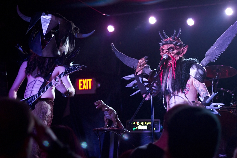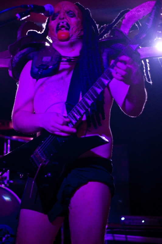 The band’s stage show was nothing short of a fantastically horrendous display of do-it-yourself effects. Skunkerus Urungus wasted no time dousing the crowd in green semen from a squirt gun penis and a masked human slave quickly covered everyone in the pit with fake blood. In honor of Valentine’s Day, Cupid found his way on stage.