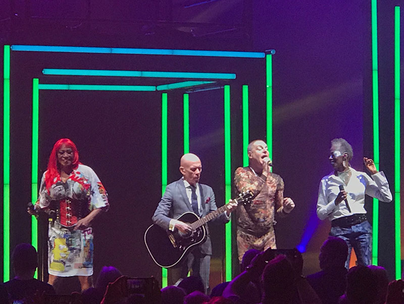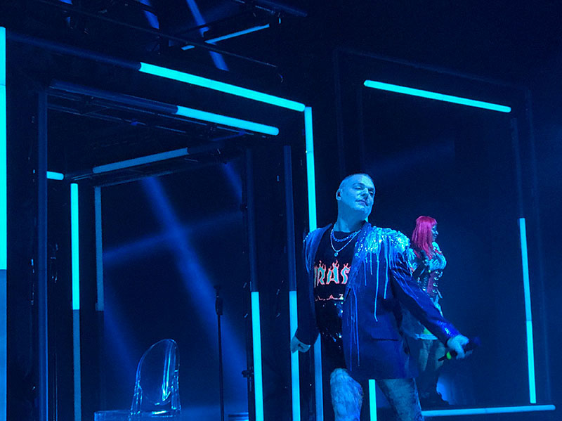Bathed in blue light, Andy Bell sits backwards on a chair facing the audience. It’s a classic motif that has me thinking of Liza Minelli in Cabaret. I prefer the staged musical to the film, but Minelli’s performance is iconic. Still, given the choice, I’d take an Erasure concert over a Minelli live show. Nothing against Minelli; Erasure have just played a far more dramatic role in my life.