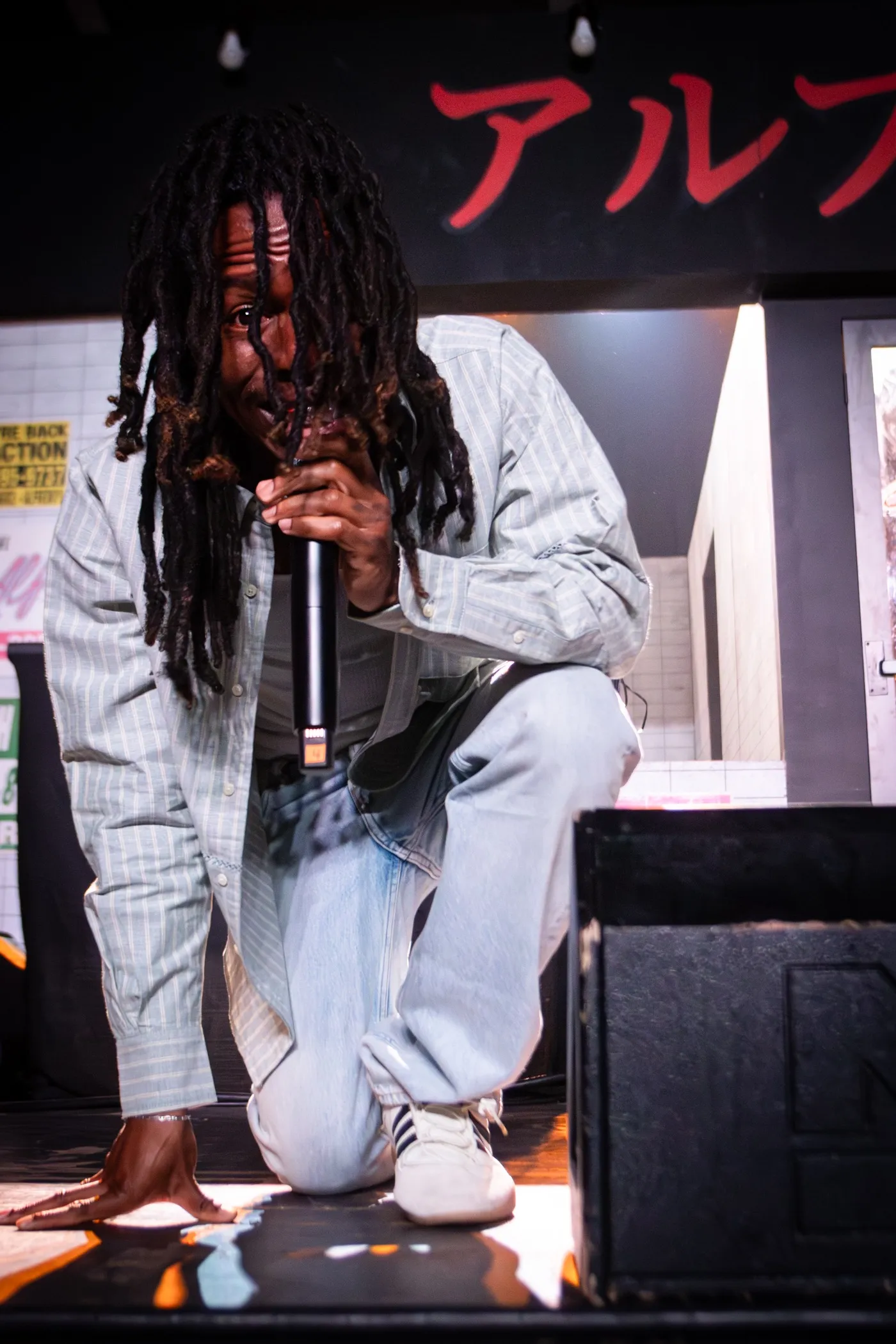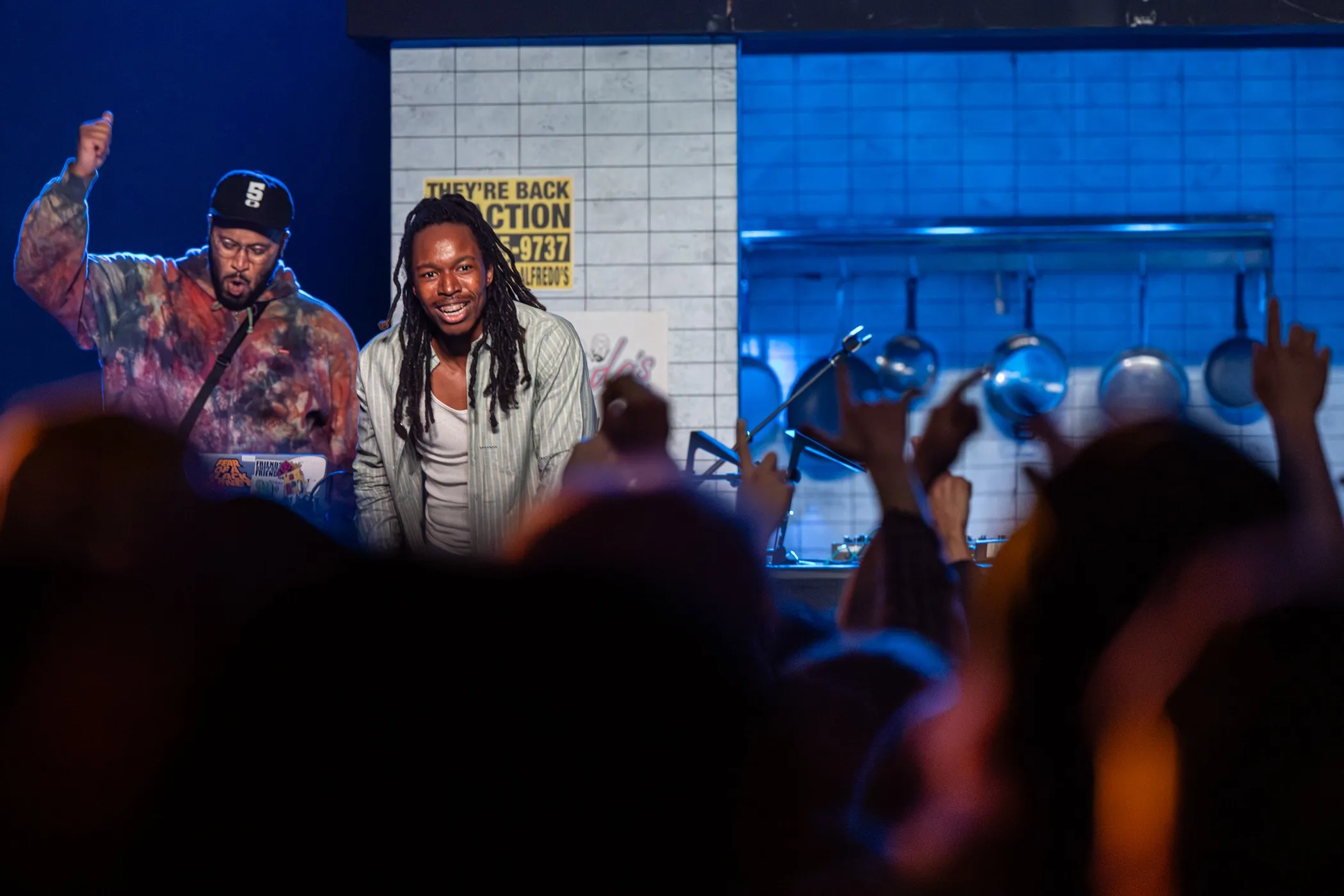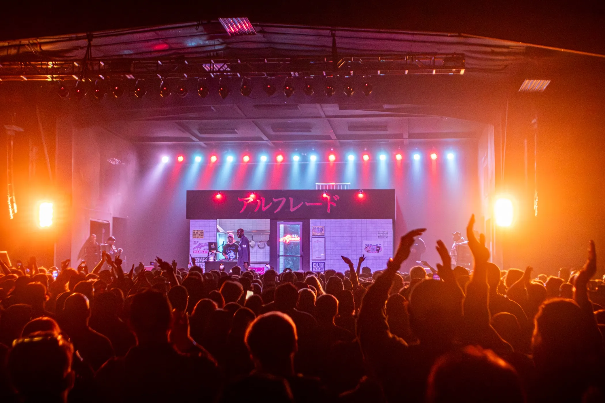 The Alfredo II tour poster depicts Gibbs’ hand grasping the globe. The Alchemist and Gibbs aren’t officially on a world tour, but they’re campaigning for another Grammy bid after Alfredo was nominated in 2021 for Best Rap Album, and the show that came to The Union had a thoroughly global feel. The first indicator was the on-stage set design, a boxy, two-level imitation of an inner-city Asian food joint with a neon “Alfredo’s” sign, providing something to look at while a DJ prepped the swelling, buzzing and semi-surprisingly youthful crowd for the night to come.