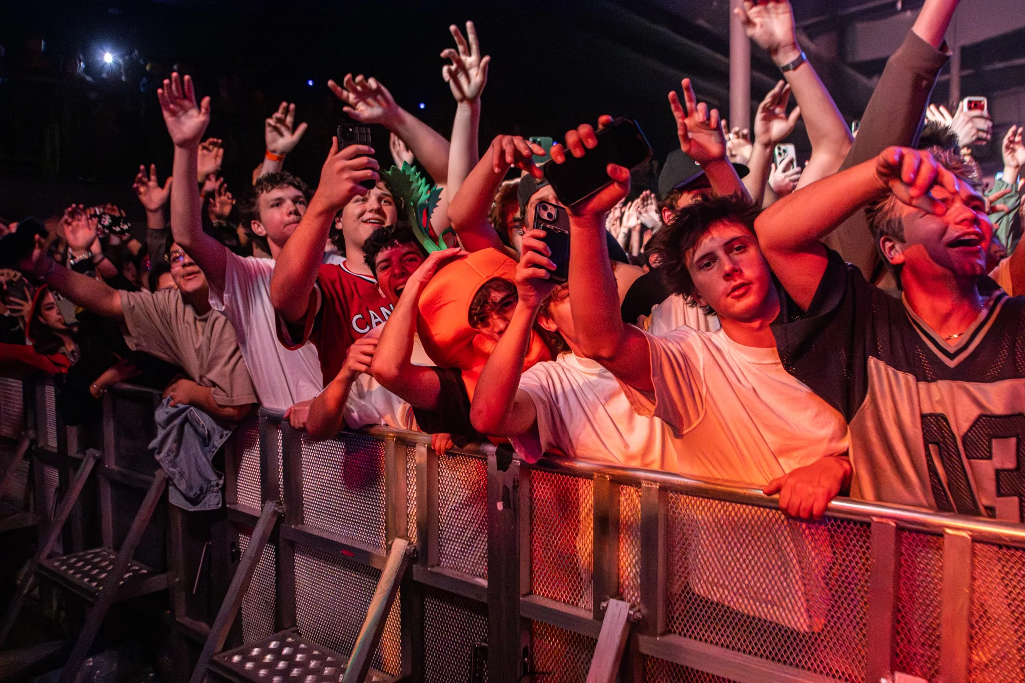Rapper MAVI came out next and wasted no time working the crowd, calling out to the audience to get their hands in the air, then proceeding to rap with emotional intentionality over some of his most popular and heartfelt songs. He enticed the crowd with a “Fuck ICE” chant, among others, and came out for an encore where, upon his return to the stage, MAVI promised he’d only do another song if a mosh pit opened up — which it did, in earnest.