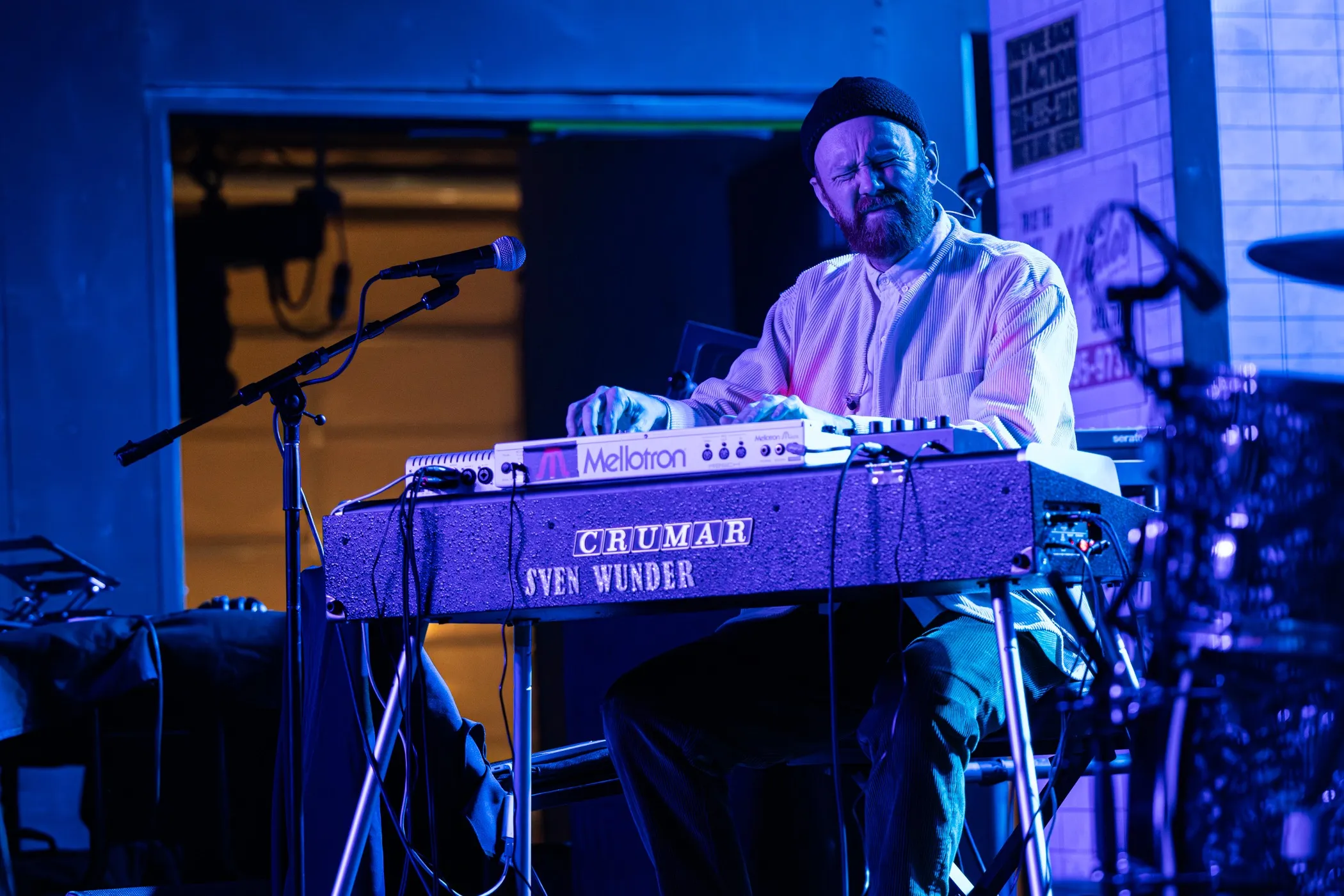 Swedish Eastern jazz instrumentalist Sven Wunder took the stage first, setting up in front of synthesizer and keyboard, while his partner Josefin Runsteen added a hip-hop element with live drums. The vibey, psychedelic, lounge lizard-esque and cinematic music that Wunder is known internationally for emanated from the stage and mixed well with the dark, purplish-red lights and the smoke that began to fill the air, setting an open-ended mood for the evening.