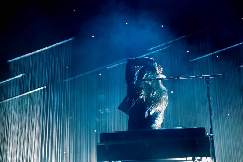 I’m far enough from the stage that the people are blurs of slow-moving flesh, but the background shows a starry mess of lights, supplementing the dingy L.A. sky above me, while puffs of smoke from the front of the stage look like bubbles. The coolness of Victoria Legrand’s whispers is complemented by blue lighting, and as the wire wall behind the band starts to move with crimson shapes and the audience sways back and forth, I feel like I’m watching a concert under the sea.