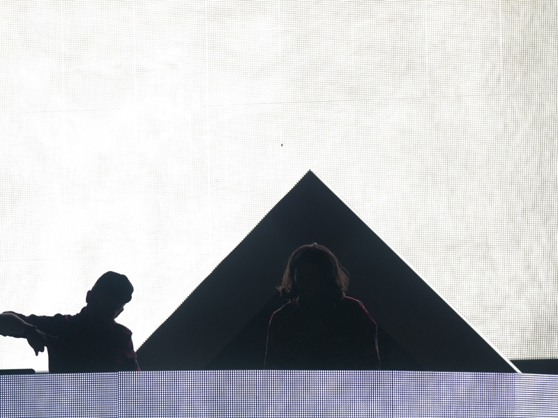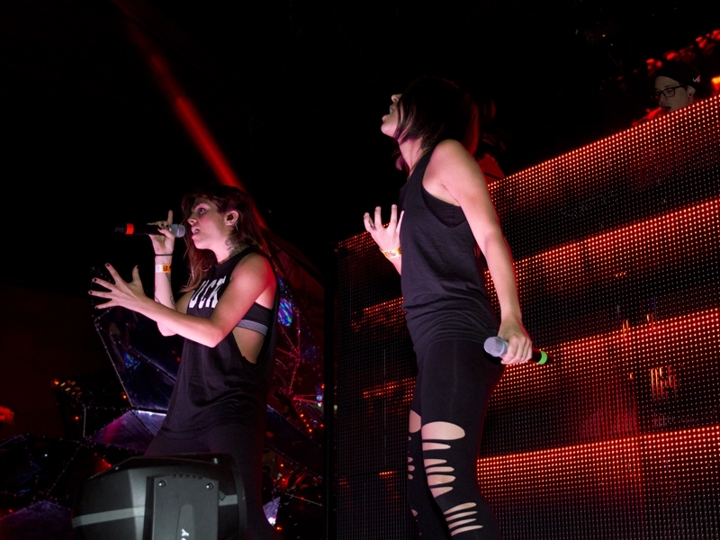 Finally, Krewella took the stage in front of a crowd so tightly packed that I couldn’t get through the door until after the first song. The Chicago-based group opened their set with their new single “Live For the Night” off their new album Get Wet. After that, the group immediately went into “This Is Not the End.” Sisters Jahan and Yasmine showcased their fiery personalities on a bigger level by singing live on every original song in their nearly hour-long set. Their stage, which had a giant screen behind their booth with volcano shaped lights on each side, showed a mixture of random images like Pomeranians, as well as their logo and images of the group. Although the group is famous for mixing pop vocals with grimy dubstep drops, they dropped a lot of hardstyle tracks in between their original songs. They also gave the crowd a blast from the past by dropping “Everytime We Touch” by Cascada (I’m actually really curious how that song came into play) and surprising everyone with an electronic remix of the iconic Killers song, “Somebody Told Me.”
