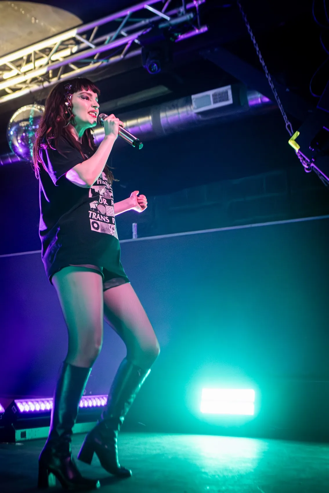 Lauren Mayberry makes good use of the stage space at Soundwell. Photo: Derek Brad.