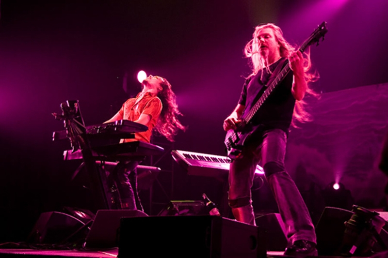 The stage set with pieces inspired by the artwork on their new album, the group spread out to allow room for the elevated drum set that occupied most of the center-back stage and Holopainen’s two-tiered keyboards with a third off to the front of stage left. All smiles and enthusiasm, the band wasted no time starting into their premiere single, Amaranth.