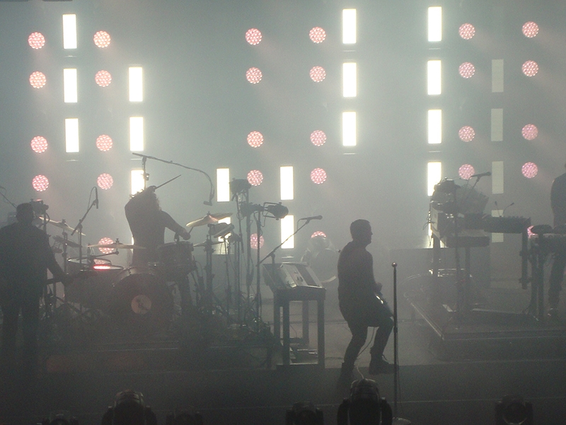 After Explosions in the Sky left the stage, the lights dimmed and immense amounts of fog were pumped into the audience, and then the light show began. I have to say what NIN did with their lights was absolutely phenomenal. It was one of the best aspects of their show. NIN started their set with “Copy of A.” I was pleasantly surprised by this performance; I absolutely hated NIN’s latest release, Hesitation Marks, but I found this song when played live had more elements than the album. The album release of “Copy of A” had nothing but synth and never really seemed to build to anything, yet live this number had real drums, guitar, and built to an explosive finish. Accompanied by the light show, this concert was off to an amazing start.