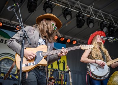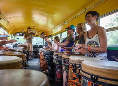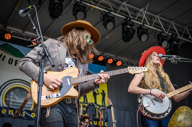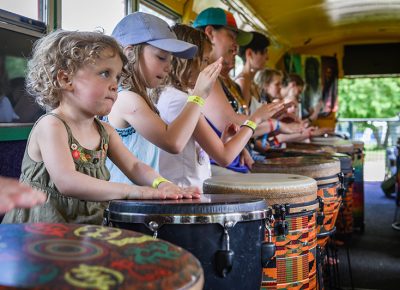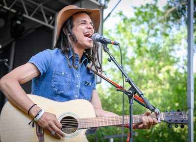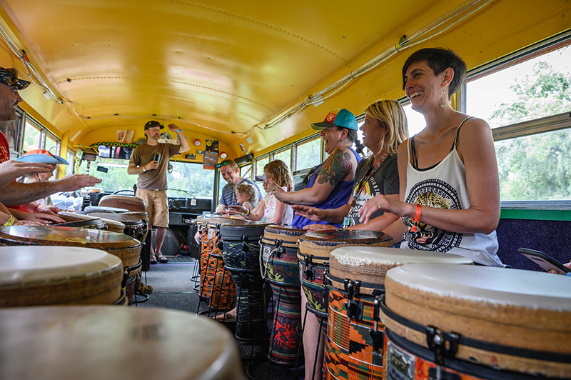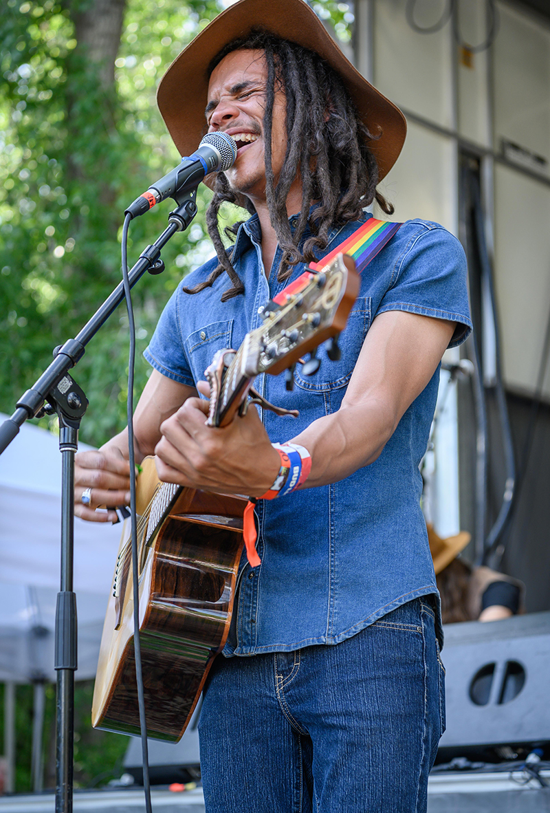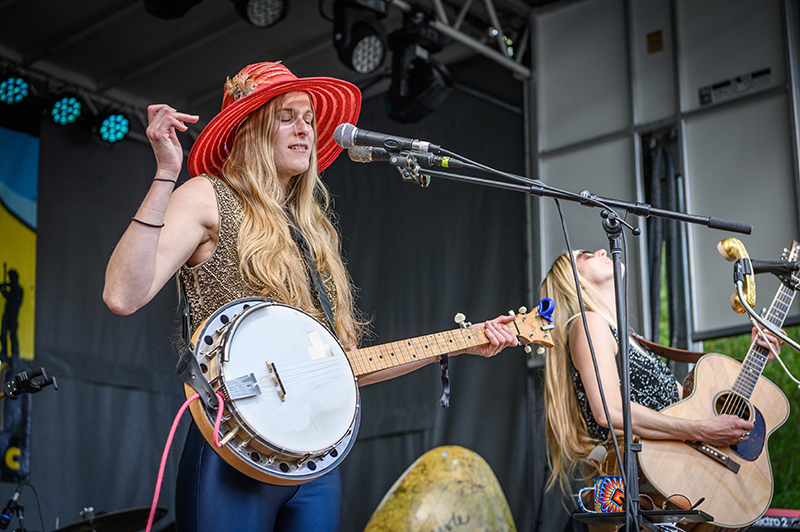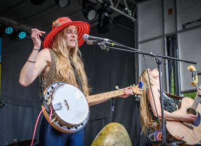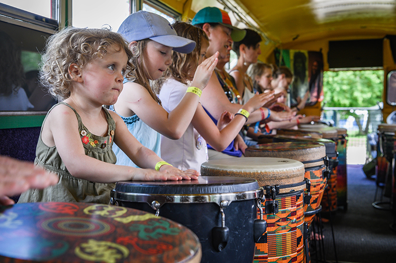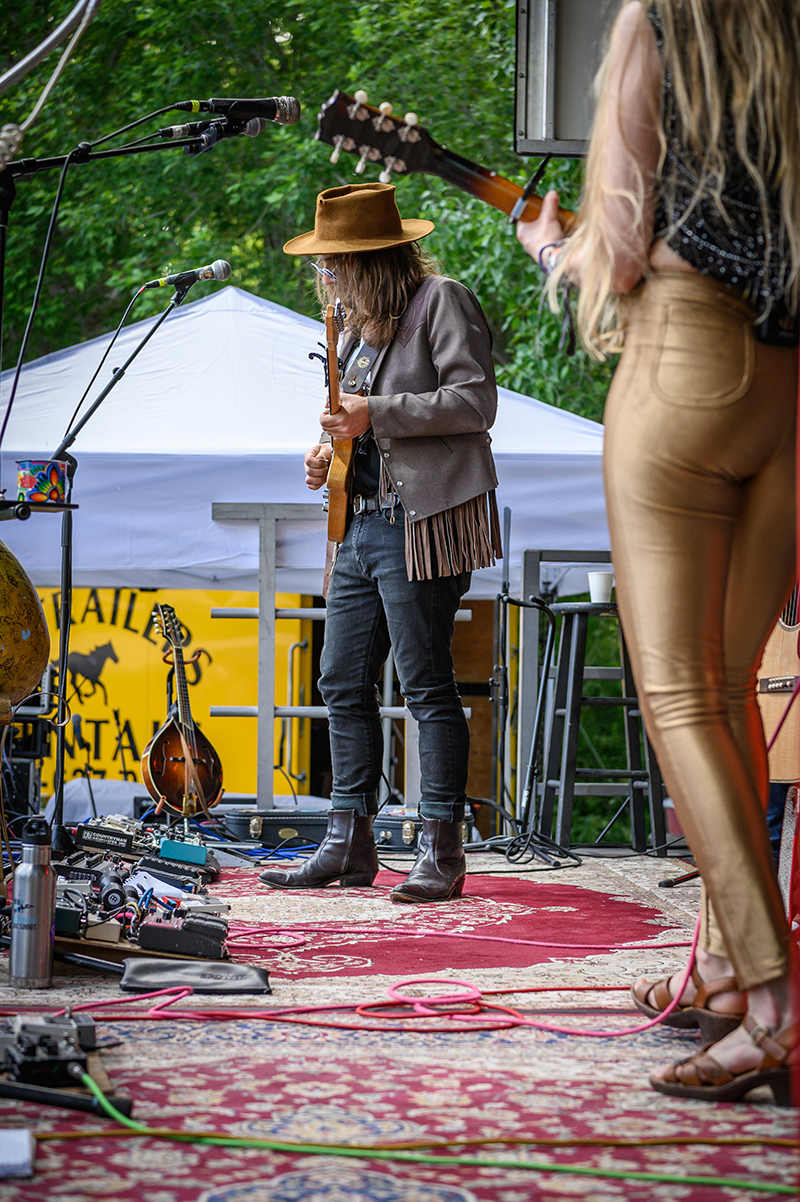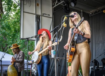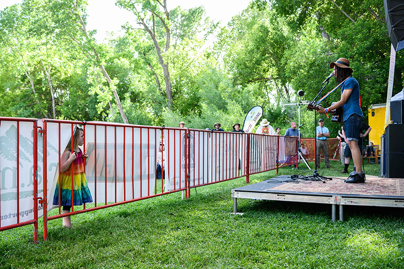 Wandering around the camp, I stumbled about a red drum bus, full of folks young and old beating on their instruments in a rhythmic collaboration. The festival goers enjoyed days of workshops on subjects like banjo playing and flat-pick guitar playing. The audience picked up slices of pizza from Lucky Slice and washed it down with a local brew from Rooster’s Brewery. Many great bands played the Ogden Music Festival, and headliners included Shook Twins, Mavis Staples and Chris Jones & The Night Drivers. Lounging on chairs and blankets center stage, the festival had also provided an area to the right of the stage for dancing and moving. Proceeding behind the venue were the Van Sessions folks—a podcast of local jamming! The vibe at the festival was wondrous, even for my short experience there.