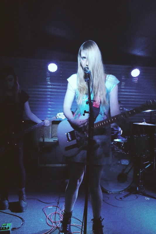 The all-girl quartet lived up to the Northampton hype and delivered fuzzy, grunge-flavored guitar pop with songs from their debut LP, Hell Bent. Singer Abby Weems did a pretty good Courtney Love impression through most of their set, minus the raspy voice. Their tunes were a great pop foil to the punk noise to come and the audience was hoppin’ around to their sugary sweet melodies. On their last song, guitarist Ally grabbed the mic for a sweet and campy intro to their slow-burning album closer “The Better End.”