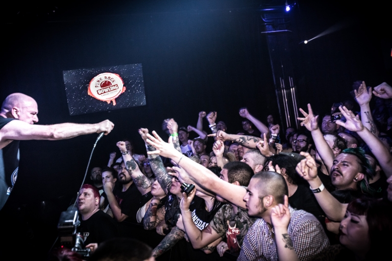 Leading in with a piano solo, they launch into “Riot Squad” to the jubilant cheers of the crowd. Cock Sparrer’s presence onstage seems to offer some sort of symbolism for unity through hard riffs. Everyone again is inspired to bring their fists to the air in total solidarity. Cock Sparrer continues on with “Working,” “Droogs Don’t Run,” “Get a Rope” and “Argy Bargy.”