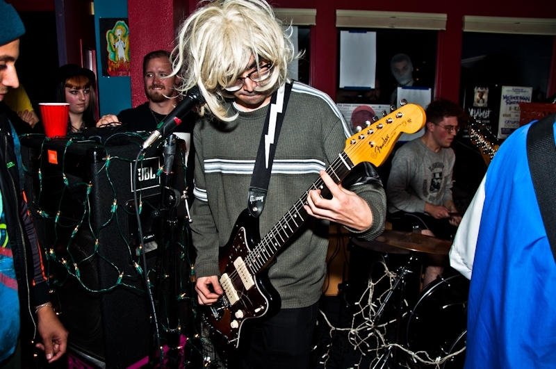 Upon hearing the sound check, a less-packed room tripled its occupants in a matter of seconds. Closing off this night’s festivities, Chalk played as Nirvana, with Luigi Ghersi wearing a blonde wig portraying a back-from-the-dead Kurt Cobain. Chalk knocked out number after number like “About a Girl” and “Negative Creep,” much to the excitement of the crowd. Each song caused ripples of wild moshing through the gathered and apparently tireless crowd.