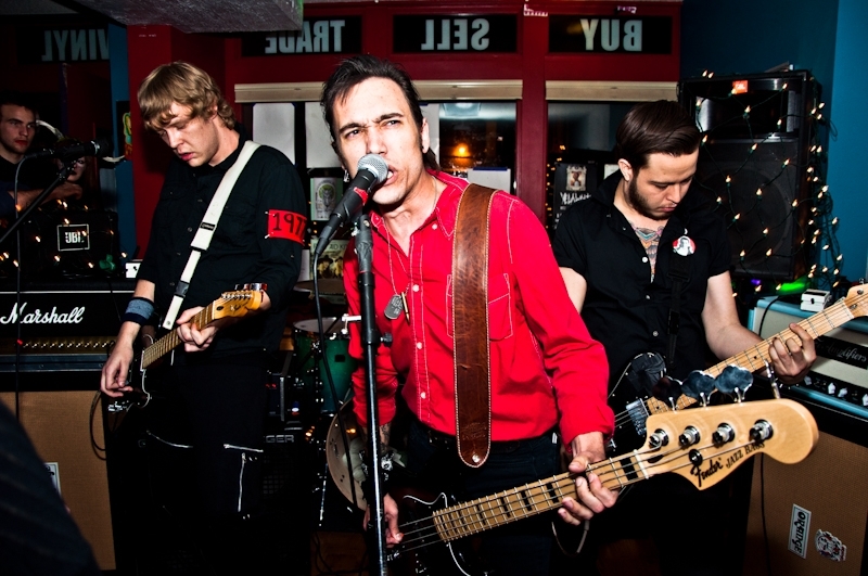 Rushing back into the venue after a quick break, I arrived to find myself in near-riot conditions. Problem Daughters’ take on The Clash inspired the shop to become a seething mass of bodies jumping up and down with giddiness. No doubt this electrifying energy was spearheaded by the enthusiasm that radiated from the band’s solid performance.