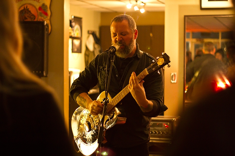 The crowd thinned out by the middle of Scott Kelly and the Road Home’s set, but the remaining people were as friendly and generous as before, if not with heavier eyelids. Everyone felt the generosity of one particular crowd member during the final few songs of the band’s set as he passed out the contents of a 30 pack of PBR. The show came to a close around midnight and the crowd filtered out on its own accord. I left the venue wanting more tattoos and feeling a warm sense of community despite only recognizing a few faces. I would definitely attend another show at Heart of Gold Tattoo. Although it’s small, the acoustics are optimal and the atmosphere was beyond inviting.