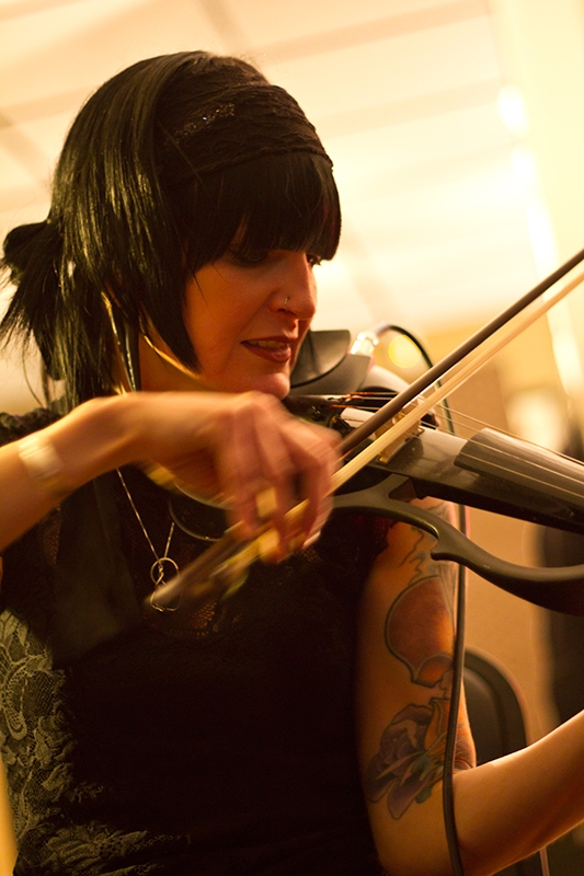 SubRosa performed their first acoustic set with bassist Levi Hanna and drummer Andy Patterson. Prior to this show, all of their scaled-down sets were performed by Sarah Pendleton and Kim Pack on violin and vocals, with Rebecca Vernon on guitar and vocals. SubRosa balanced their sound between two electric violins, an electric guitar and bass and Patterson’s percussion. His drum kit was absent and replaced by a wooden box, two mallets and a small array of effects. SubRosa instantly fell into an unshakable groove and it was apparent the band was more than comfortable with their music.