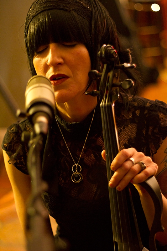 As Vernon played, she confidently gazed into the eyes of the mesmerized audience members. Hanna performed sitting on top of his practice amp, and the rattle of his bass strings against the fret board were audible over his reverberating bass. The set seemed too short, only because SubRosa is so excellent live I didn’t want it to end. I heard a disappointed groan from somewhere in the crowd as Vernon announced their final song, an a capella number rich with harmonies from Vernon, Pack and Pendleton. It was obvious the vocalists had excellent internal metronomes and had practiced the number more than a few times. Stripped-down SubRosa can contend with the band’s full setup and if you haven’t seen them play an acoustic set, you really need to.