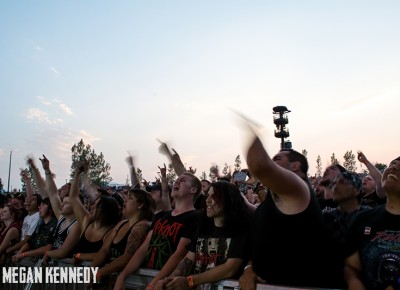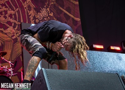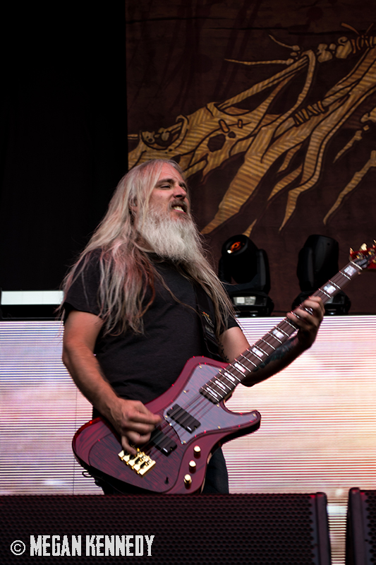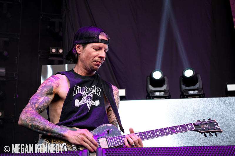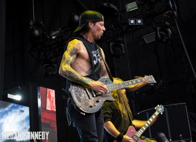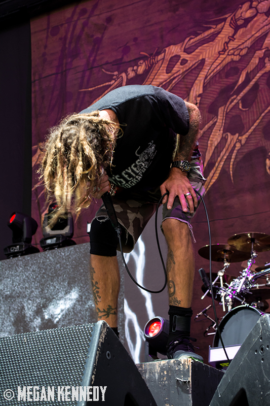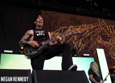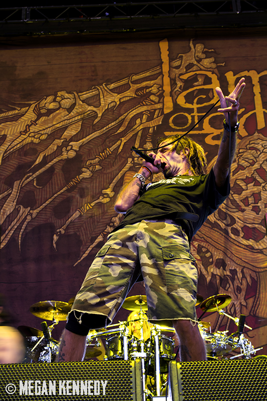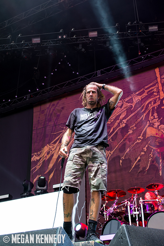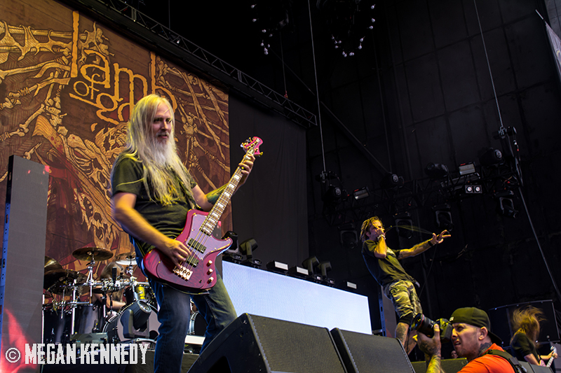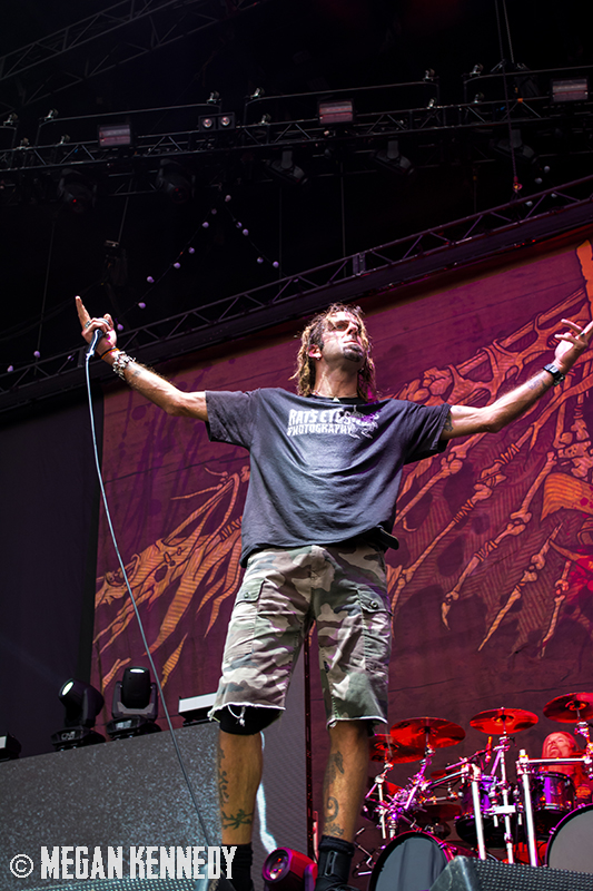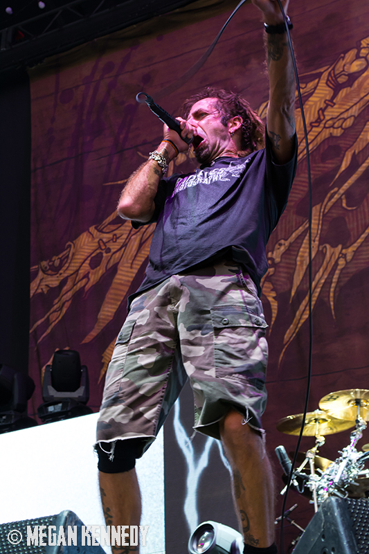 After Bullet for My Valentine’s set, I had just enough time to chug a beer and head to the photo pit before Lamb of God went onstage, and that was the first time I really got a good look at the crowd and realized how fucking packed the place was. The sun was still glowing in the western sky when they finally took the stage, emerging to chants of “Lamb of God!” They opened up with “Walk With Me In Hell” (always a strong choice) and launched into a set that was basically aimed at their longtime fans, touching on albums all the way back to As The Palaces Burn. I couldn’t believe they put “Vigil” on the set list—it’s one of my all-time faves and such an older song that I feel lucky to hear it. Even though they just put out their highly-acclaimed seventh album VII: Sturm und Drang, they only hit up two songs from that newer work, including first single “Still Echoes” and the orgasmic riff-liciousness of “512.” Despite doing this for twenty fucking years, these dudes still have an immense amount of energy. Randy tore around the stage in his typical predator fashion like he hasn’t aged a day. As a fan who has seen them so many times live, the set list was a bit tired, but I imagine that is a shitty consequence of being deep in the scene—for other fans with less frequent show attendance, it was an encompassing and awesome performance.