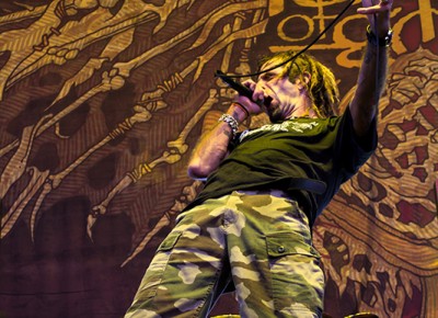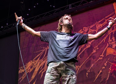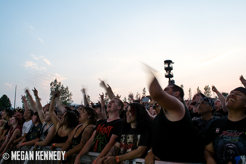 It seems like only yesterday I was a wee lass of 20-something, deep in the throes of the New Wave of American Heavy Metal, stoked on what was supposed to be a massive tour date featuring Slipknot, Lamb of God and Shadows Fall. One of the Slipknot dudes got sick and had to cancel the day of, but their openers decided to carry on and arranged a much, much smaller show at Lo-Fi. My friends and I scrambled to SmithTix to exchange our tickets and spent the entire fucking day standing in the intermittent spring rain to make sure we were among the lucky few to pack into that venue and get our faces melted off. I’ve seen Lamb of God a trillion times since then, and Slipknot once, but it’s cool to be here, a decade later, getting a re-do on the giant stadium-style showcase we missed out on. More than anything, I’m glad Lamb of God has survived the fate of many of their contemporaries—they’re still going strong, still producing quality work, and kicking through obstacles that would crush lesser bands. The same is true of Slipknot, to be fair, but Slipknot never got to me the way Lamb of God did. Regardless, these are two heavyweights who have withstood the storm and earned their keep, and I honestly hadn’t seen USANA Amphitheater so packed in a very long time.