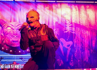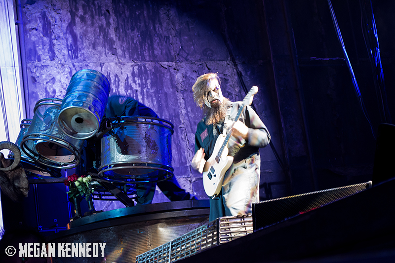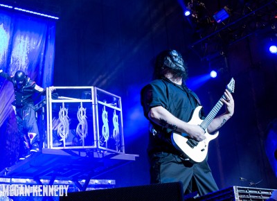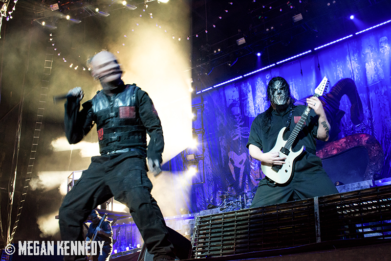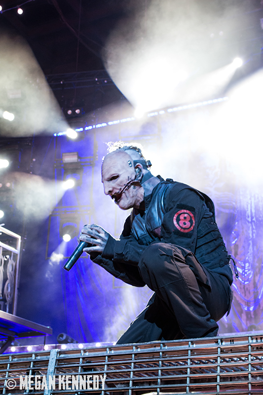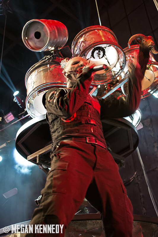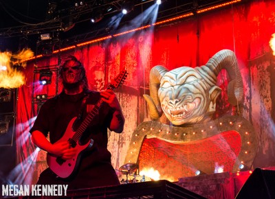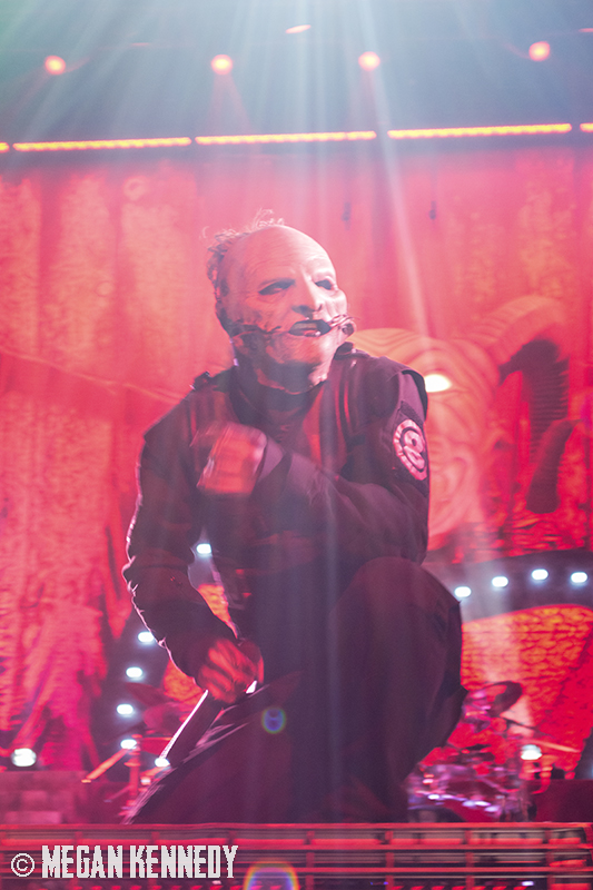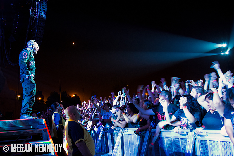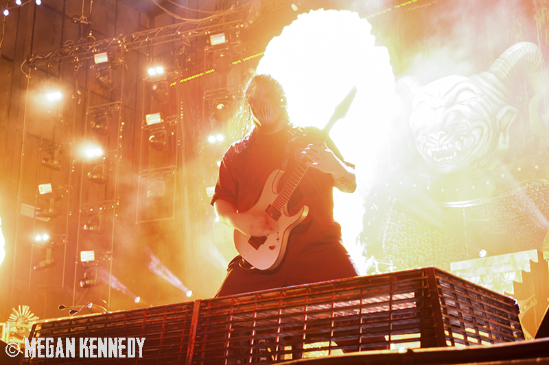 As I have disclosed before when I covered Mayhem Fest in 2012, I’ve never been a giant Slipknot fan. For whatever reason, I missed the boat on their work, but this is not to say I dislike or disrespect them. On the contrary, seeing their crowd at Mayhem made me realize that Slipknot is a very strong intersectional band that reaches across demographics and subgenres to bring together a comparatively diverse fanbase. I respect the fuck out of any artist that can affect the emotions of so many different types of minds and hearts. More than that, Slipknot just know how to put on a fucking show in the grand tradition of rock and metal showcases like those performed by KISS and Alice Cooper. They use their characters and the visuals they’ve built to create a world to perform in, instead of just rolling off the bus in their cleanest band shirt and letting the light banks do the work. Their set for this tour was as extravagant as it had been at Mayhem, including ramps, pyrotechnics, an enormous demon head, and of course the ever-present rotating and elevating drum sets for the side percussionists. Corey Taylor is very dominating of his stage space, maybe not in the same predatory way that Randy Blythe is, but in more of an MC/ringmaster sort of way. It was crazy to watch members crawl all over the rising drum kits as they spun through the air, and I found myself glad I was not their record label’s insurance monkey. They went through an enormous set list, including hits like “Wait and Bleed,” “Psychosocial” and “People = Shit,” as well as some tracks like “Purity” that haven’t gotten as much play at live events. The fans were absolutely fucking insane for the band from beginning to end. I was watching children as small as 6 running around, screaming the lyrics to every song one after the other. Calling myself a Slipknot fan isn’t fair to actual Slipknot fans, but let’s say I am definitely a fan of the Slipknot live experience. It’s hard not to be impressed by a killer show and thousands of screaming, satisfied music-lovers.