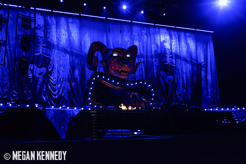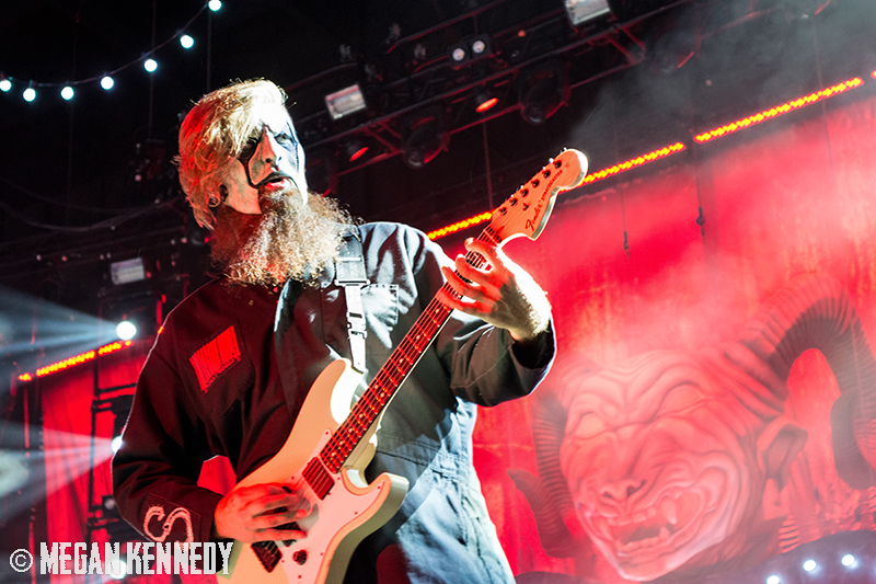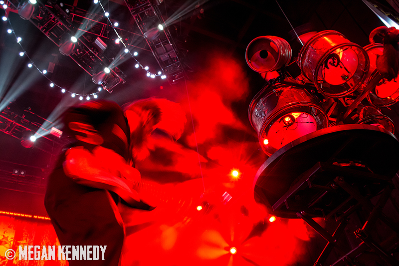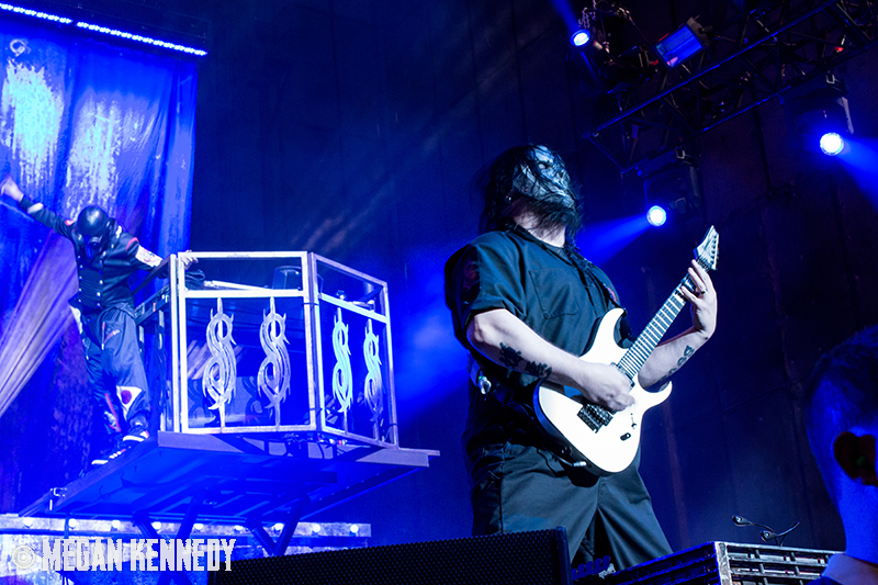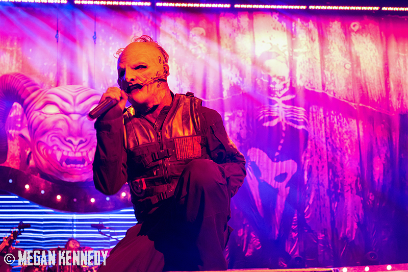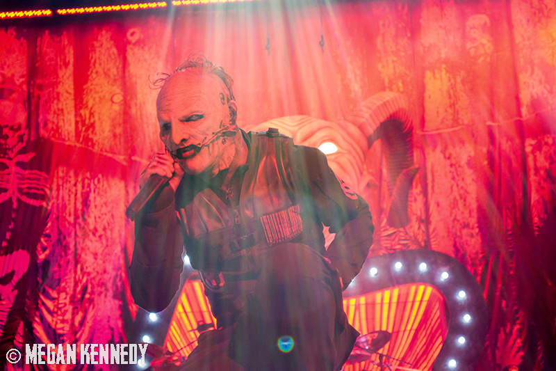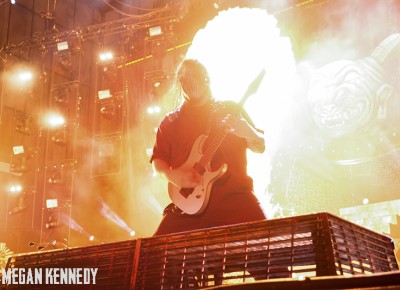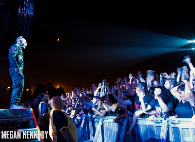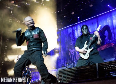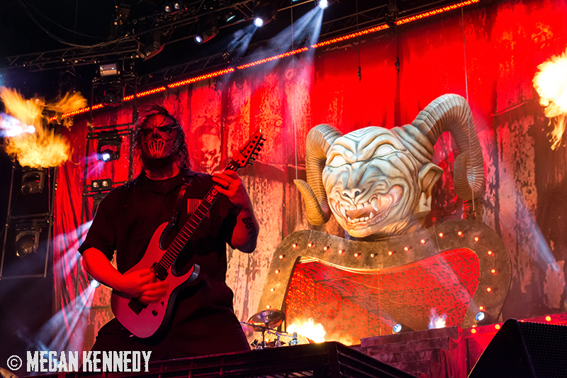 As I have disclosed before when I covered Mayhem Fest in 2012, I’ve never been a giant Slipknot fan. For whatever reason, I missed the boat on their work, but this is not to say I dislike or disrespect them. On the contrary, seeing their crowd at Mayhem made me realize that Slipknot is a very strong intersectional band that reaches across demographics and subgenres to bring together a comparatively diverse fanbase. I respect the fuck out of any artist that can affect the emotions of so many different types of minds and hearts. More than that, Slipknot just know how to put on a fucking show in the grand tradition of rock and metal showcases like those performed by KISS and Alice Cooper. They use their characters and the visuals they’ve built to create a world to perform in, instead of just rolling off the bus in their cleanest band shirt and letting the light banks do the work. Their set for this tour was as extravagant as it had been at Mayhem, including ramps, pyrotechnics, an enormous demon head, and of course the ever-present rotating and elevating drum sets for the side percussionists. Corey Taylor is very dominating of his stage space, maybe not in the same predatory way that Randy Blythe is, but in more of an MC/ringmaster sort of way. It was crazy to watch members crawl all over the rising drum kits as they spun through the air, and I found myself glad I was not their record label’s insurance monkey. They went through an enormous set list, including hits like “Wait and Bleed,” “Psychosocial” and “People = Shit,” as well as some tracks like “Purity” that haven’t gotten as much play at live events. The fans were absolutely fucking insane for the band from beginning to end. I was watching children as small as 6 running around, screaming the lyrics to every song one after the other. Calling myself a Slipknot fan isn’t fair to actual Slipknot fans, but let’s say I am definitely a fan of the Slipknot live experience. It’s hard not to be impressed by a killer show and thousands of screaming, satisfied music-lovers.