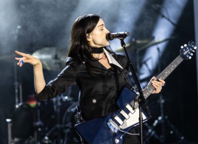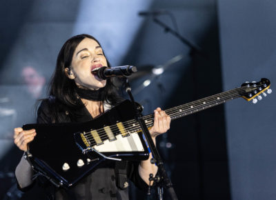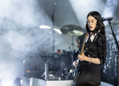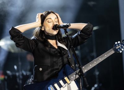 The set traversed Clark’s classics, with highlights including “Cheerleader” and “Sugarboy,” works that offered the opportunity for drum solos and dueling guitars. As the show began to close, Clark led the audience in song to “New York,” the lovely ballad from Masseduction produced by Jack Antonoff (Clark shares songwriting credits with him on the resurgent Taylor Swift single “Cruel Summer”). She took a reprieve and for a few intimate minutes, stood on the barricade and leaned into the crowd, at one point holding hands with a young fan who sat on her parent’s shoulders.